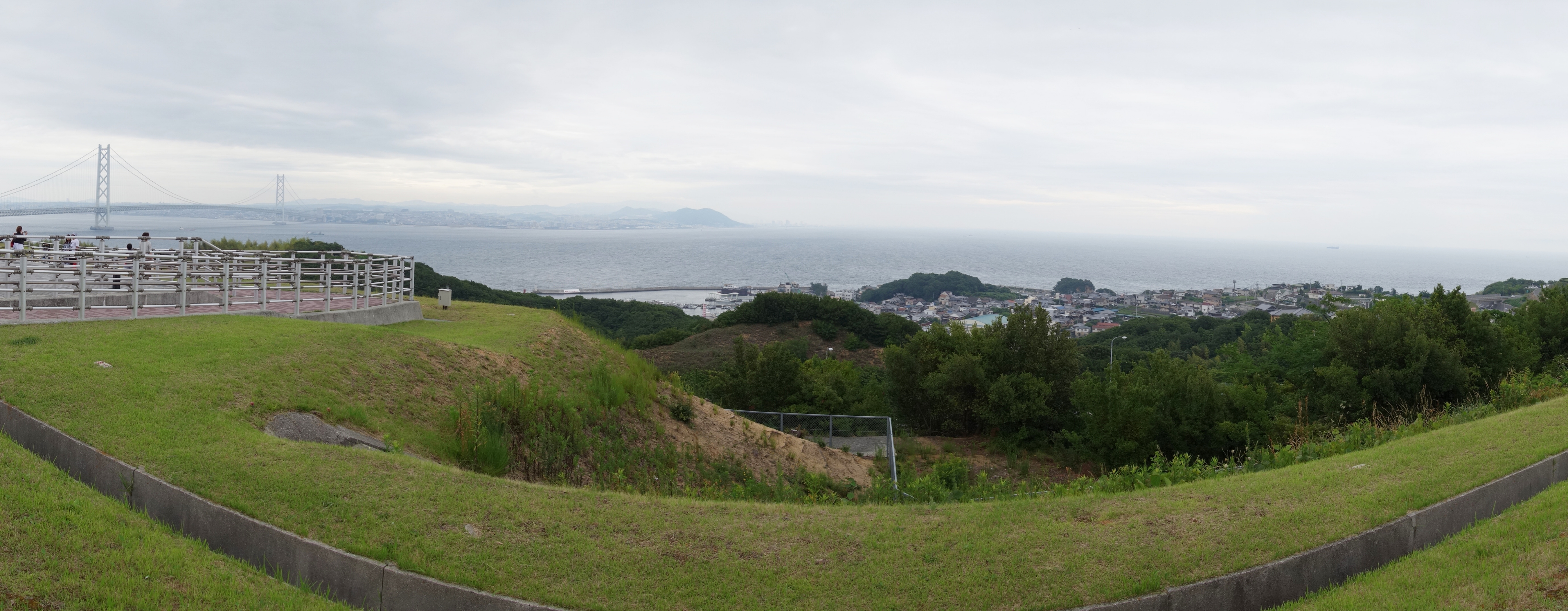 淡路SAです。あまり天気が良くありませんが明石海峡大橋が見えています。