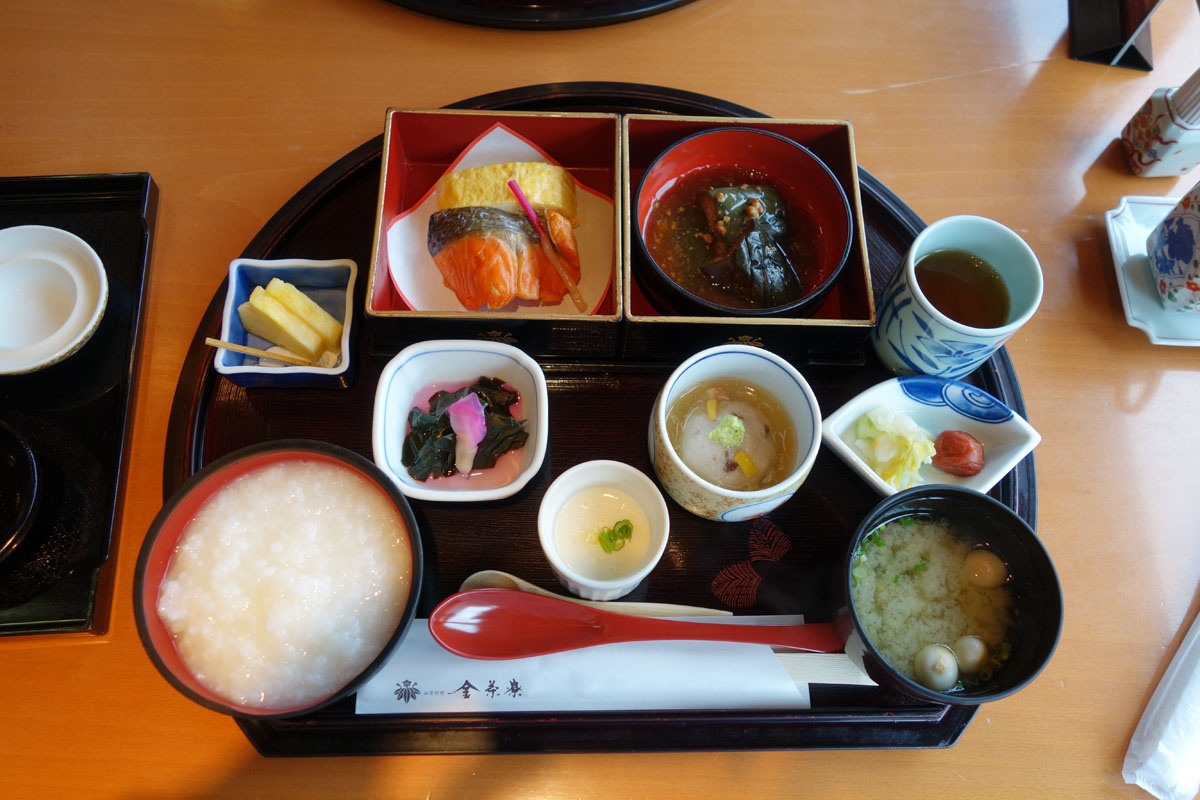 和朝食御膳「加賀百万石の朝げ」です。量的にもこれで十分で美味しかったです。