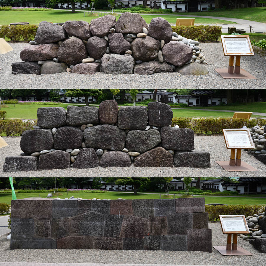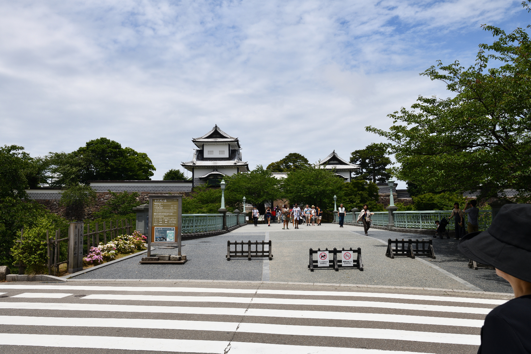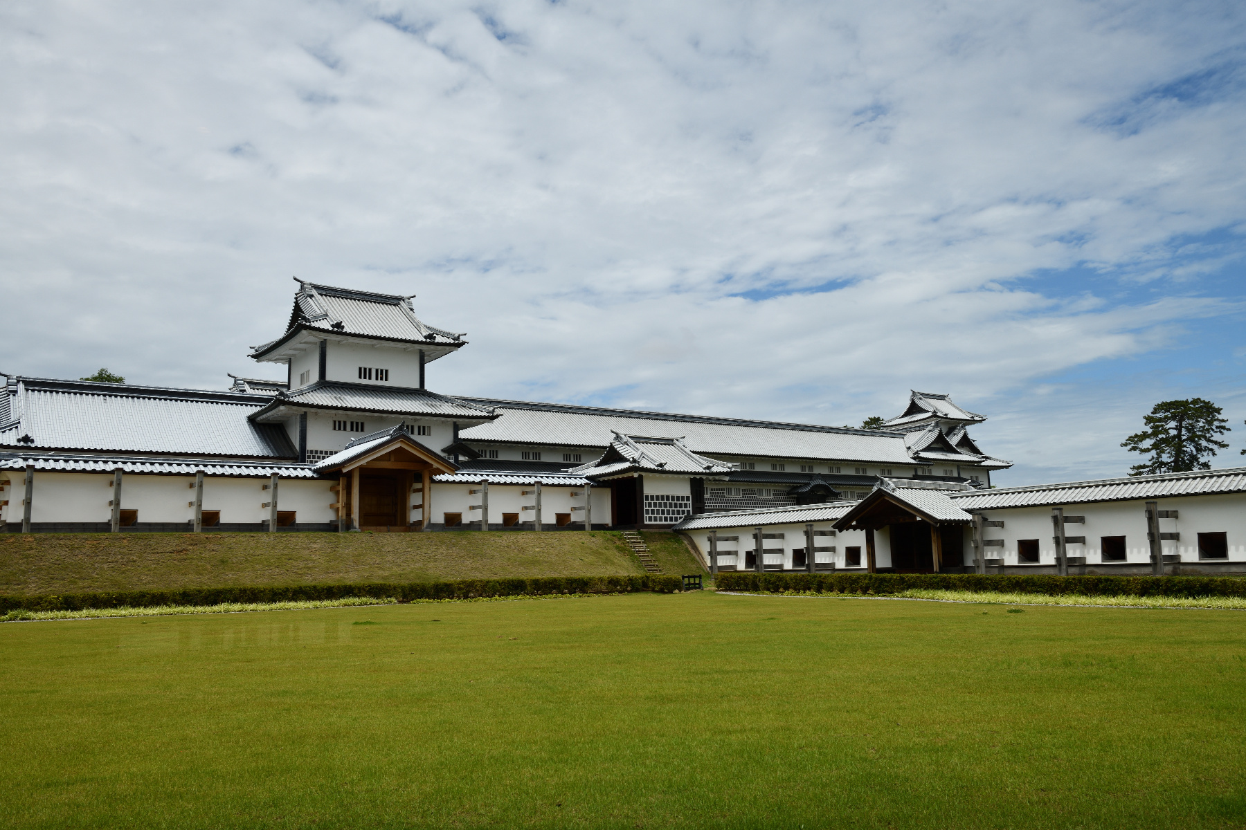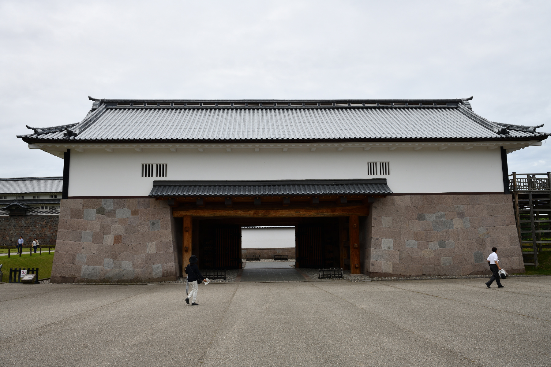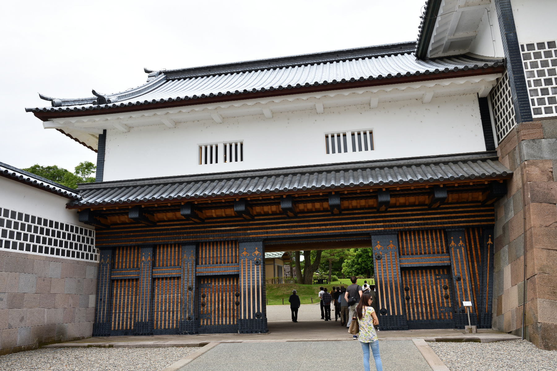 4月にオープンしたばかりの「鶴の丸休憩所」から見た「橋爪門続櫓」方向です。金沢城では北陸新幹線の開通に合わせて建物の復元・整備が進められています。