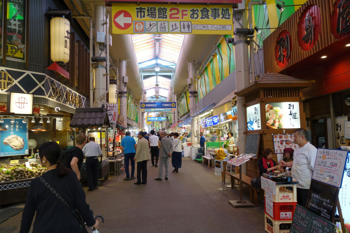 バスに乗って「近江町市場」にやって来ました。賑やかです。