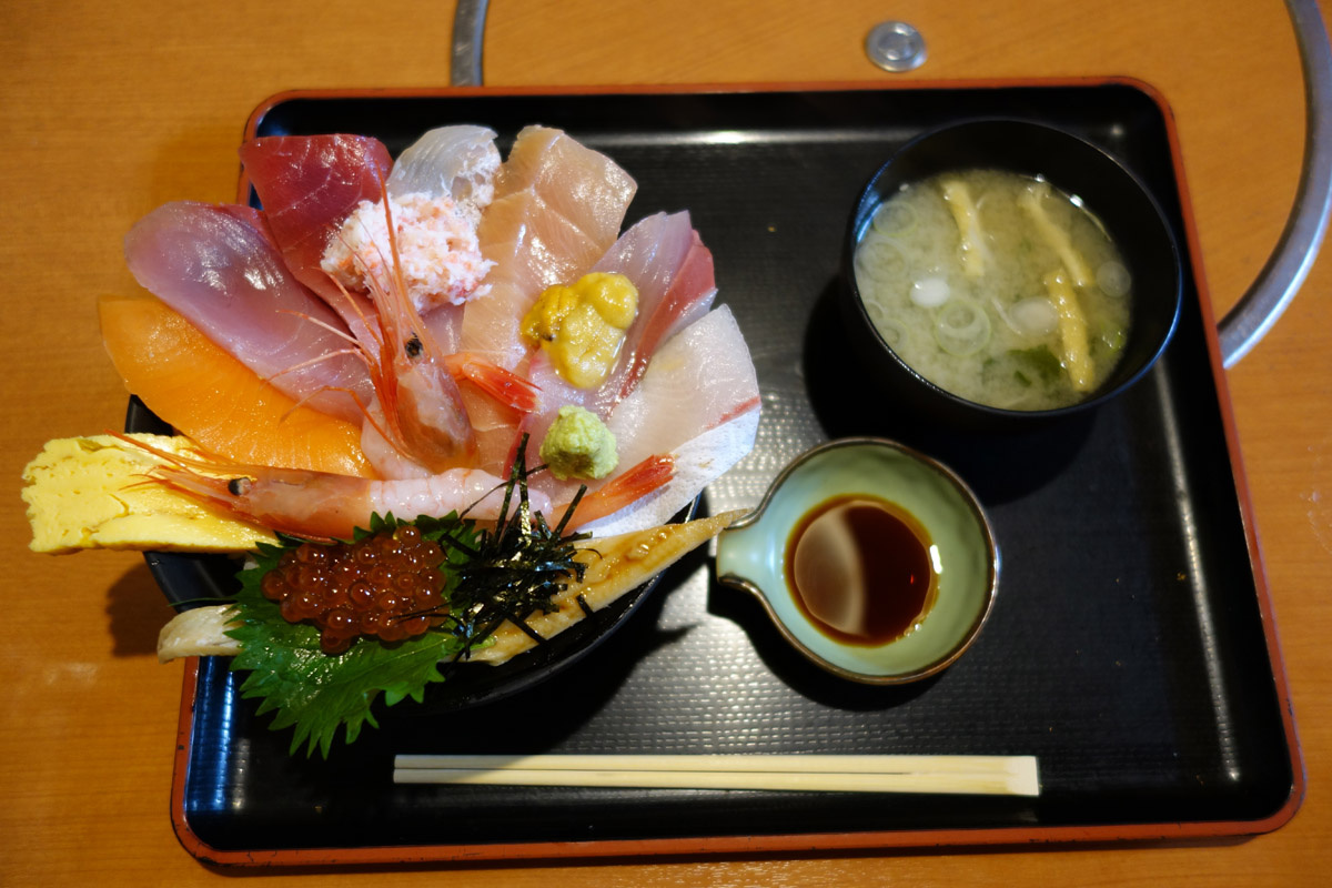 近江町市場の中の店で特大海鮮丼を食べました。あまりに多すぎてご飯は半分ぐらい残してしまいました。