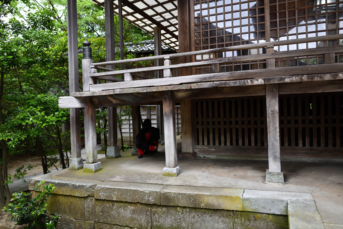 近くにあった宇多須神社へ行ってみたら、縁の下に忍者が潜んでました(境内に更にもう1人)。
