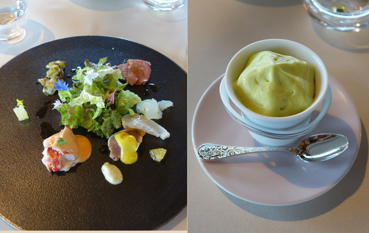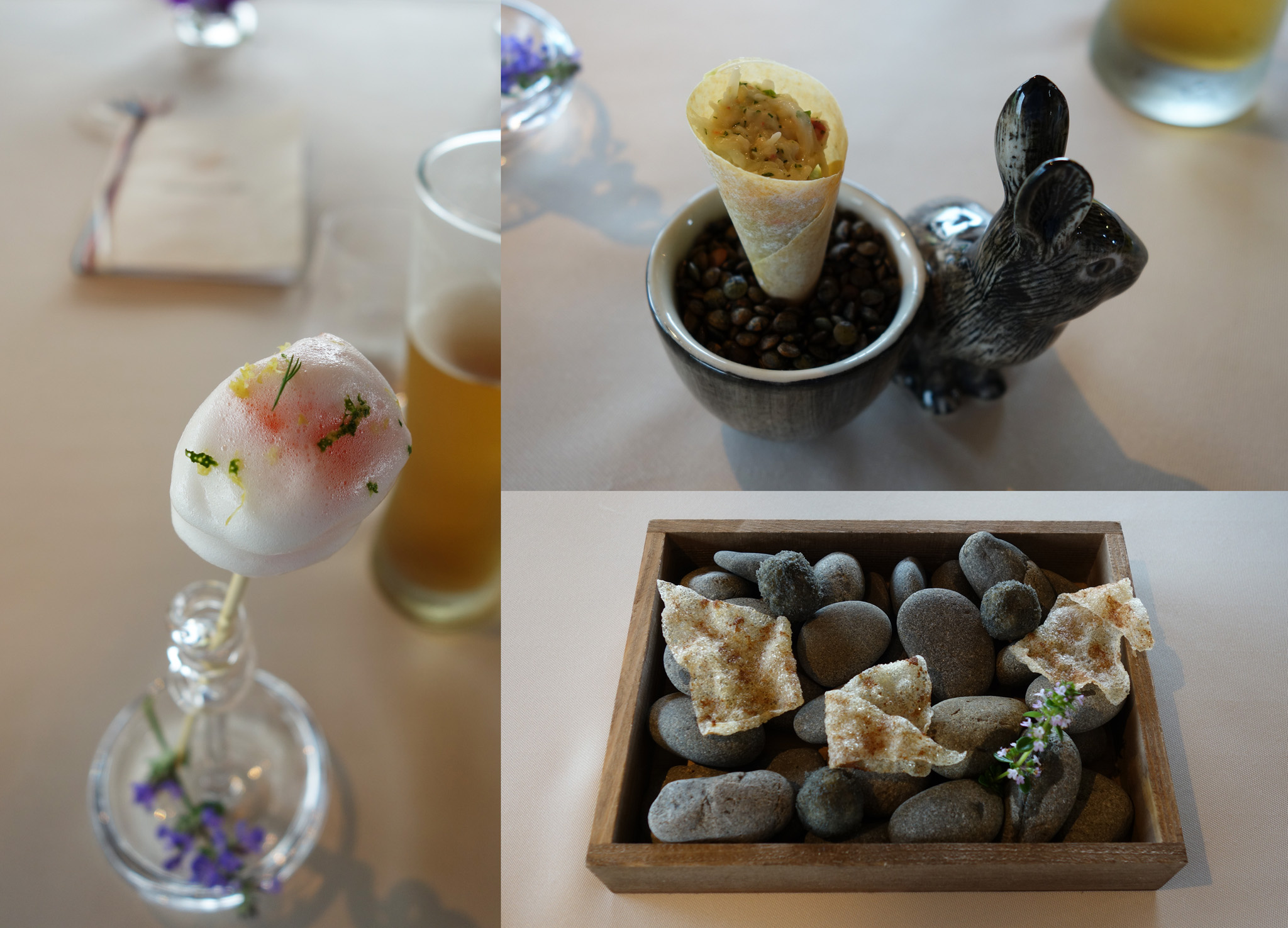 最初は極めて独創的なアミューズ4種。