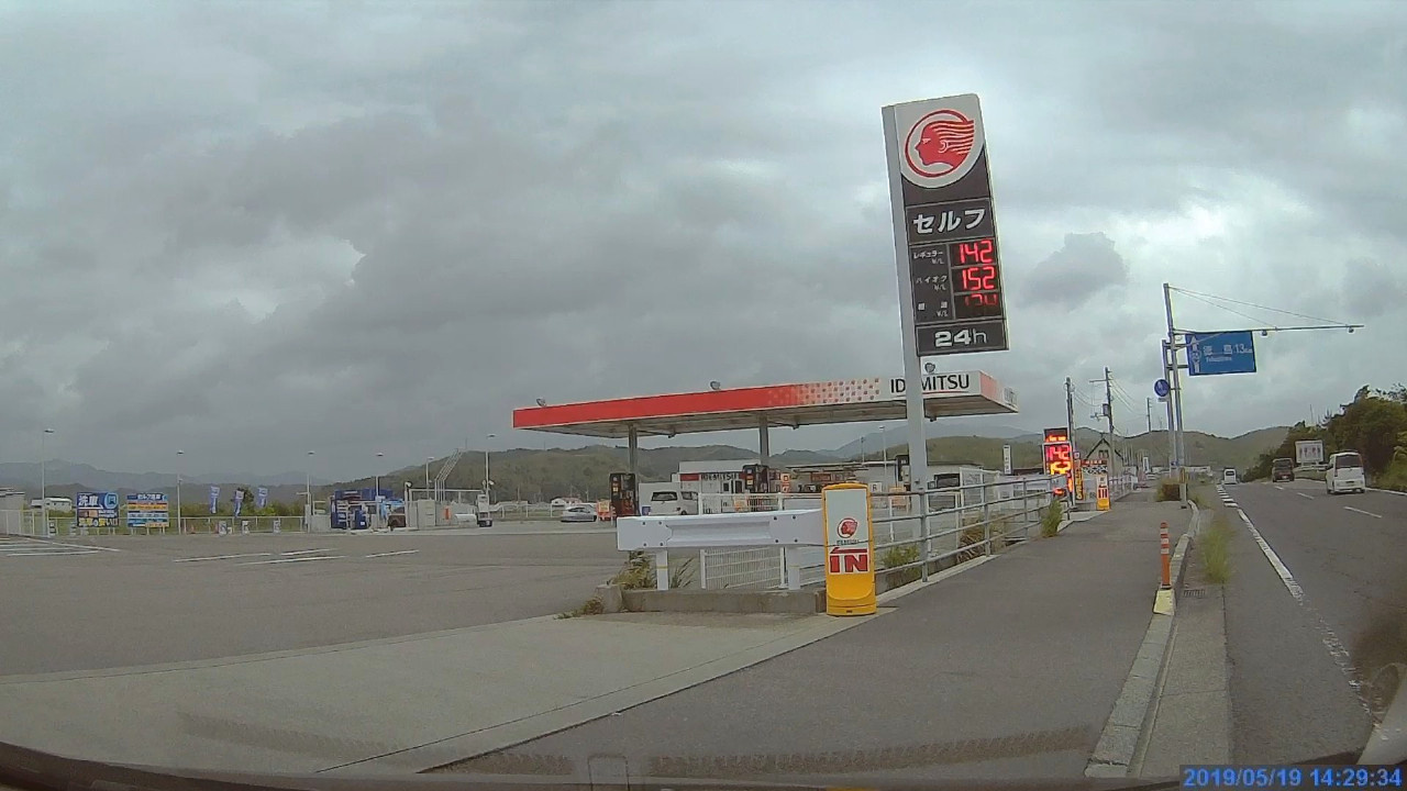 昨年の経験からセルフのスタンドに入れてほっとしたら、いつも使っているIDEMITSUのプリカがそのまま使えてラッキーでした。これが元で後のトラブルの原因となるのですが・・・。