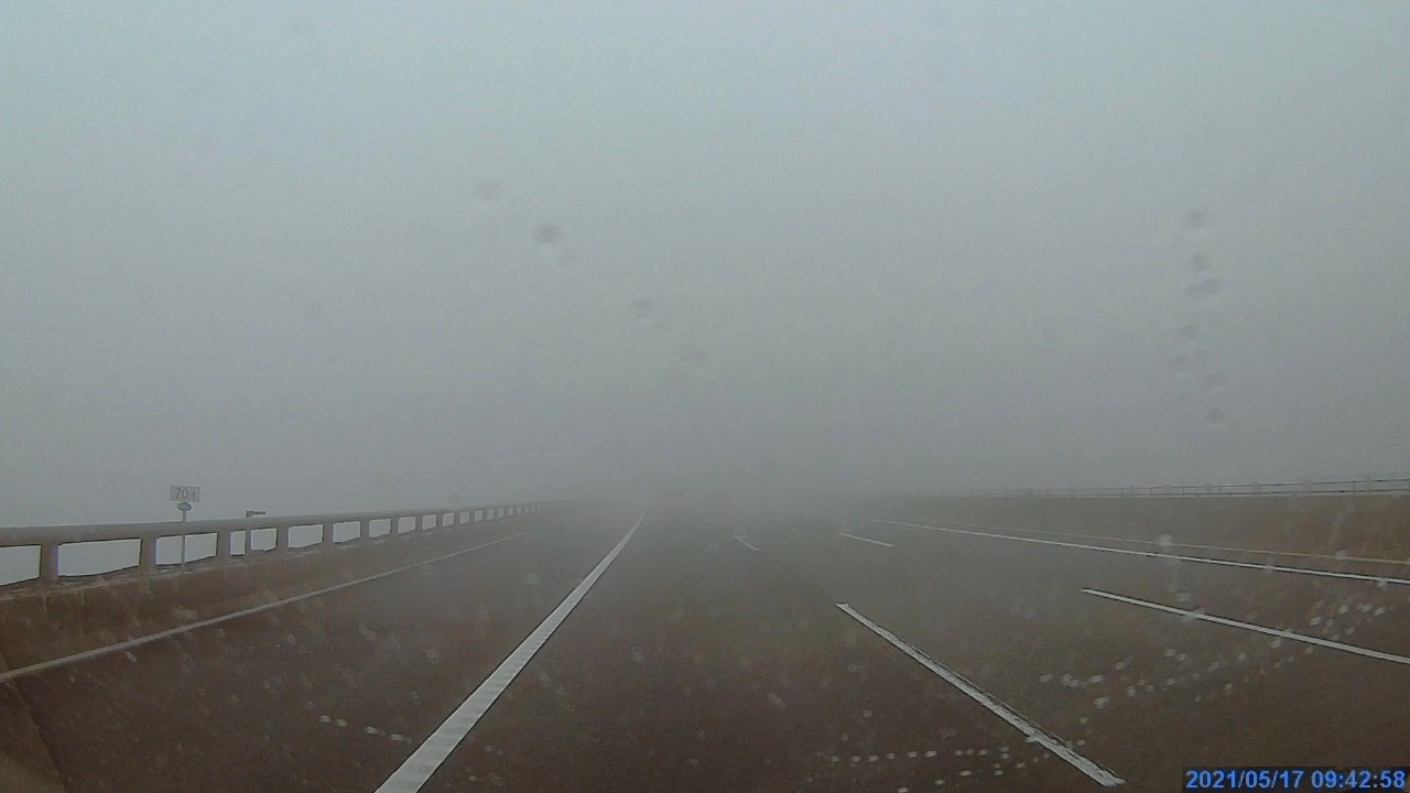 御殿場から新富士にかけては濃い霧に覆われていました。危険なので速度を落とさざるを得ません。