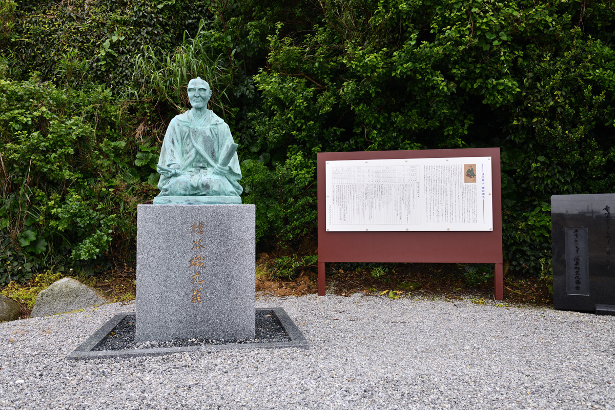 漁夫歌人糟谷磯丸の像がありました。遊歩道に沿って句を刻んだ碑が並んでいます。