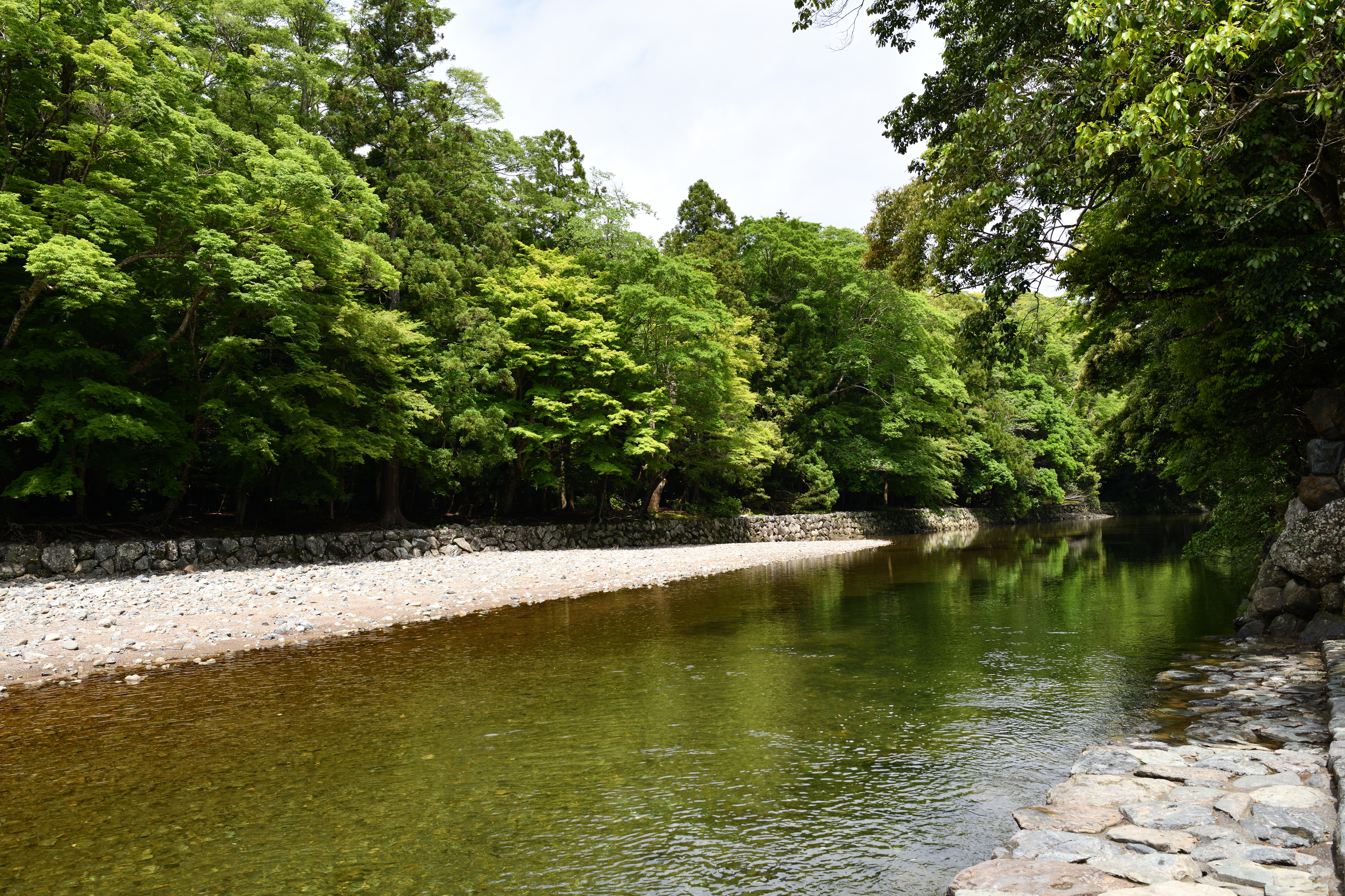正宮へ行く途中にある御手洗場では五十鈴川の畔に下りられます。