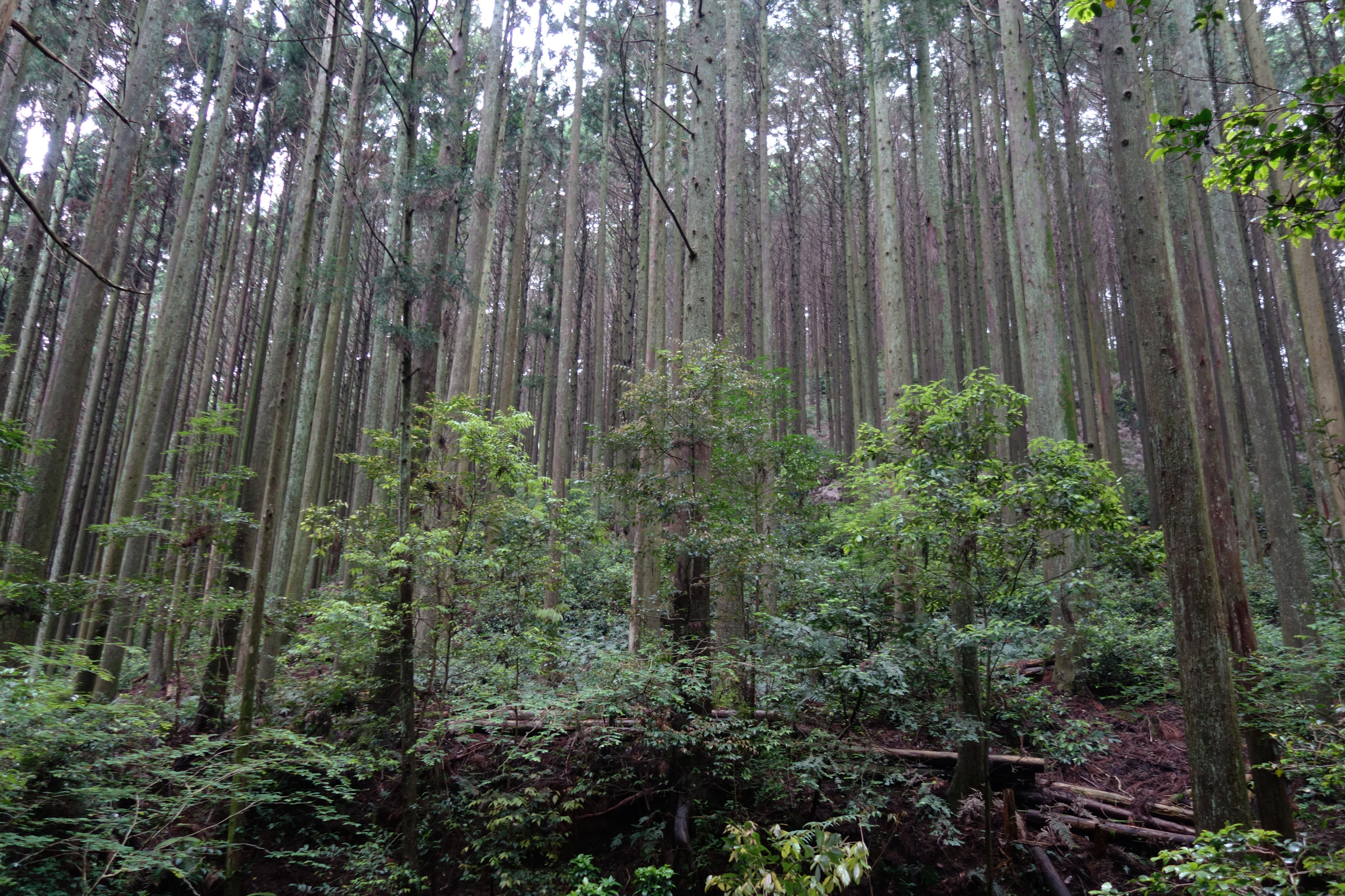 両側は真っ直ぐ伸びた杉林に覆われています。