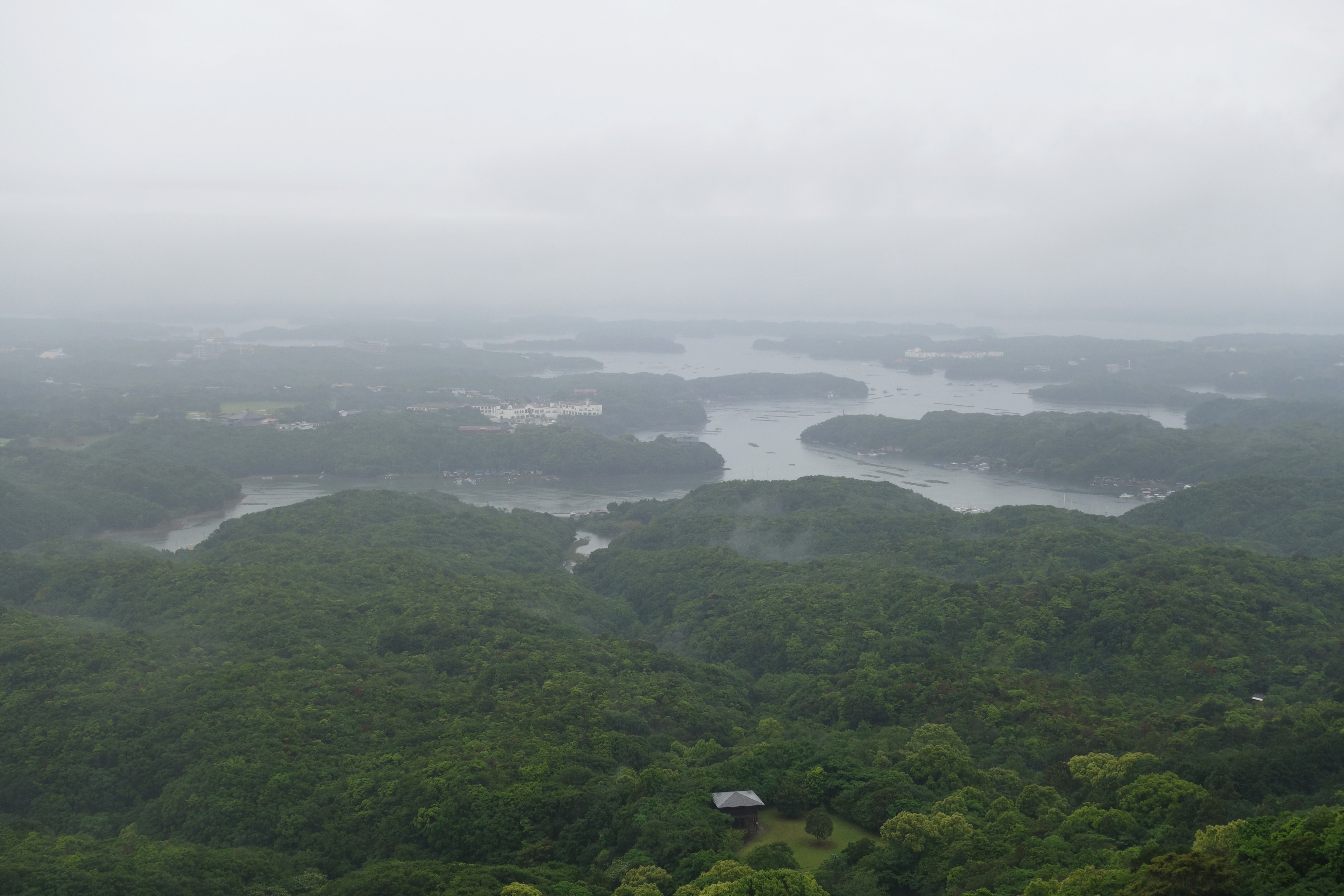雨で霞んでいますが英虞湾がまあまあ見えました。デジイチは持ち出さずコンデジで撮影してます。