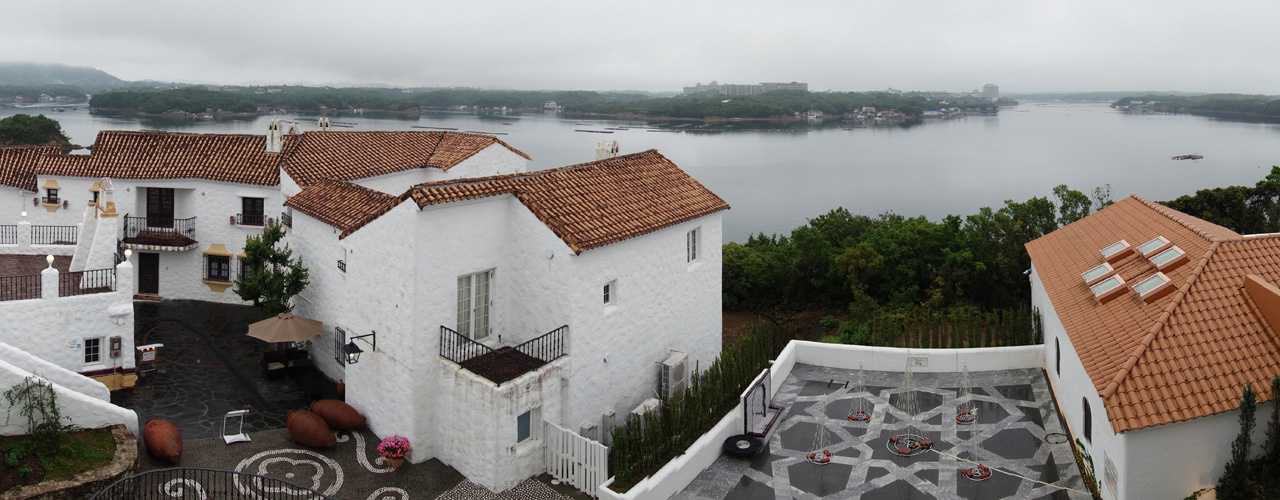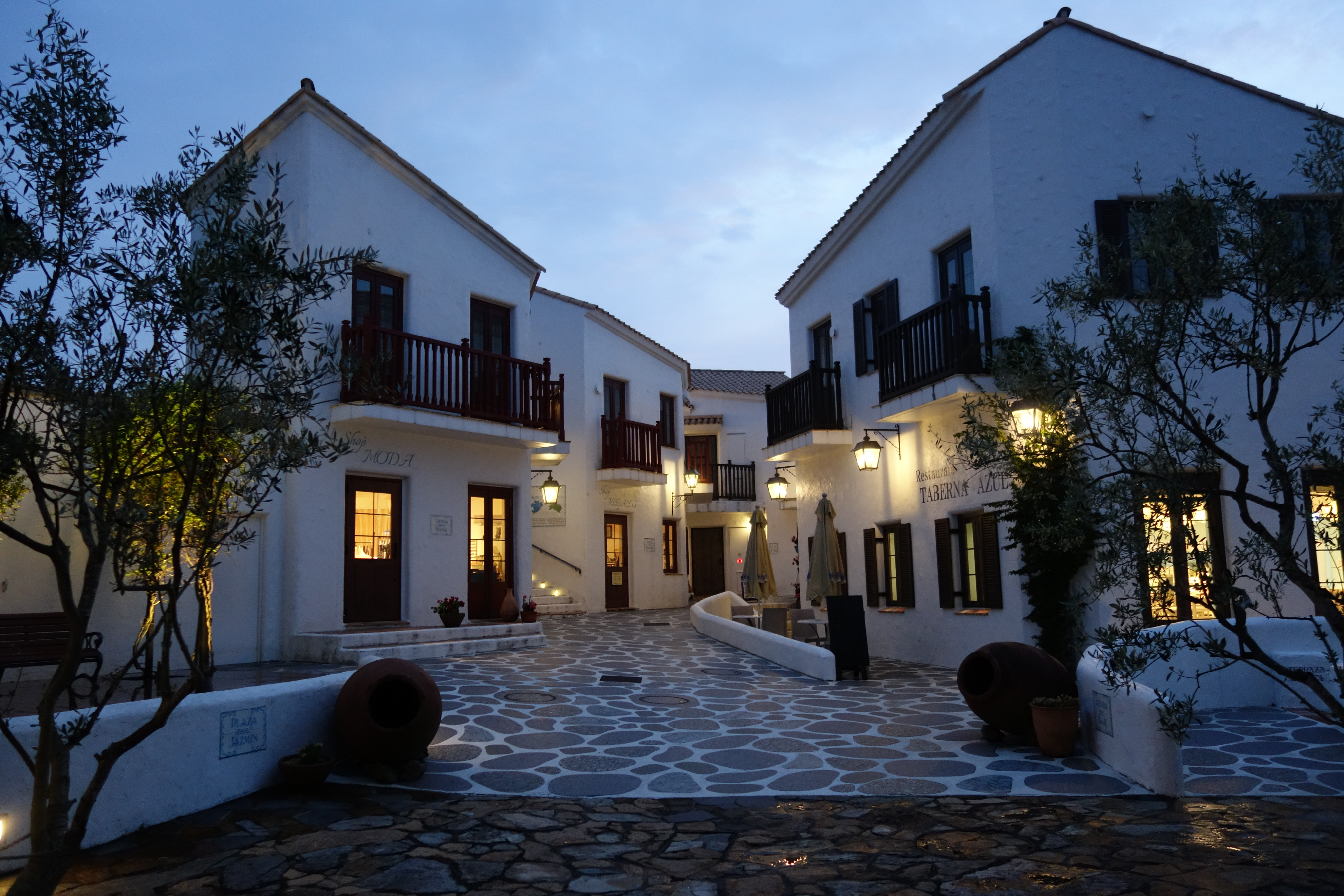 夕暮れ時の地中海村。右側のAZULがレストランです。