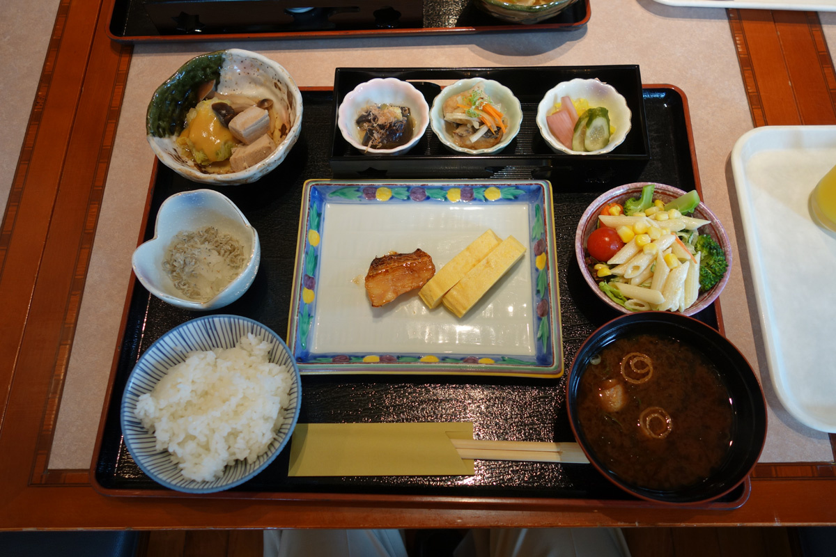 コロナ禍でビュッフェ形式を止めるホテルが多いですが、ここはビュッフェです。但し、料理を取りに行くときはマスクをして手を消毒し、更にトングなどをつかむ手にはビニール手袋の着用が義務付けられています。まあ、これだけやれば大丈夫と思います。