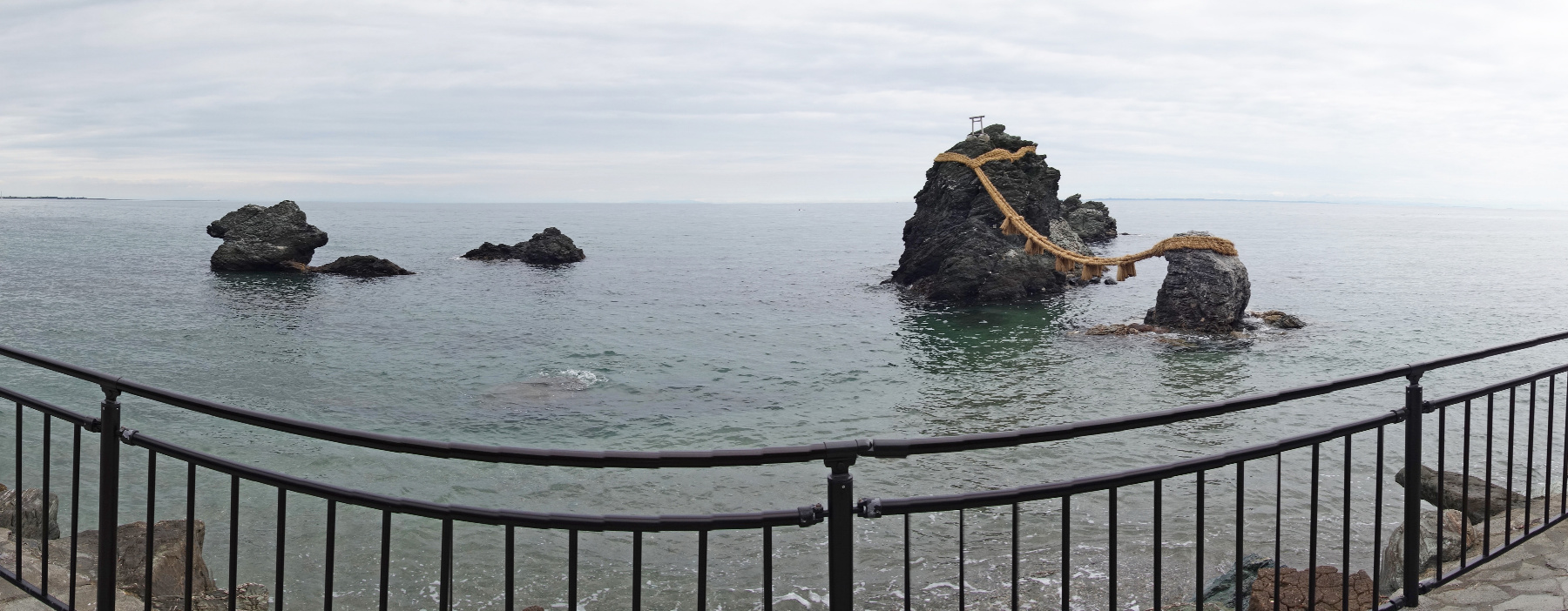 ここは夫婦岩で有名です。神社でも夫婦守りを売っています。