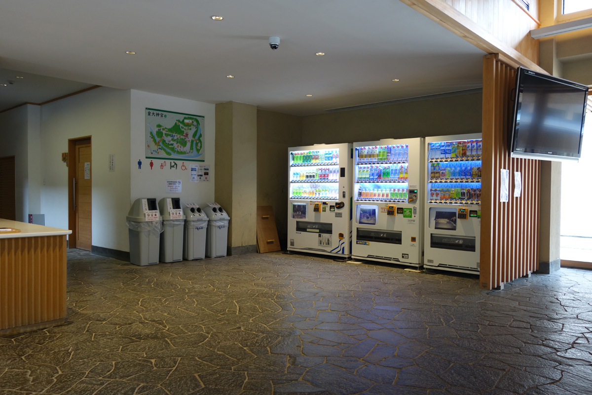 長時間歩いて疲れて喉も渇いたところで参集殿(無料休憩所)に自販機があり生き返りました。