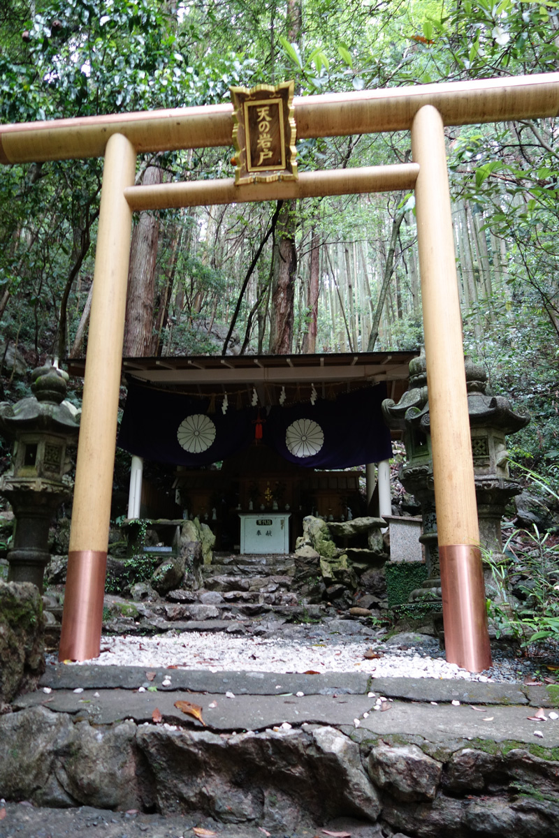 途中で最初に立ち寄ったのは天の岩戸神社。神社への道は狭く対向車が来ると緊張します。
