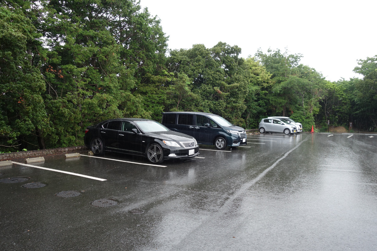 内宮の駐車場は連休の頃まで混雑していましたが、三重県の一部にまん延防止等重点措置が発令されてから空いてきたようで、この日は神社入り口に一番近い第1駐車場に駐めることができました。悪天候のせいもあるのでしょう。