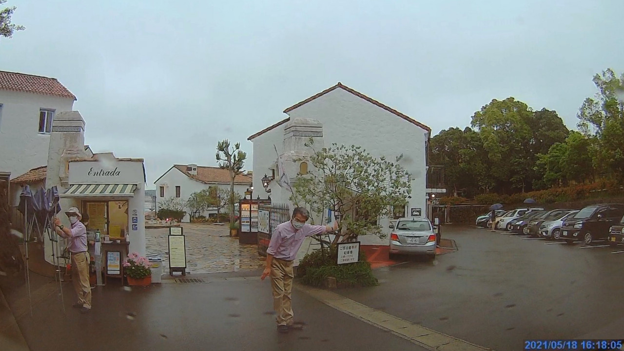 志摩地中海村に到着しました。雨だしホテルから離れた駐車場だったら嫌だなと思いつつどんどん入っていったら奥に1台分だけ空きがありました。ラッキー!。