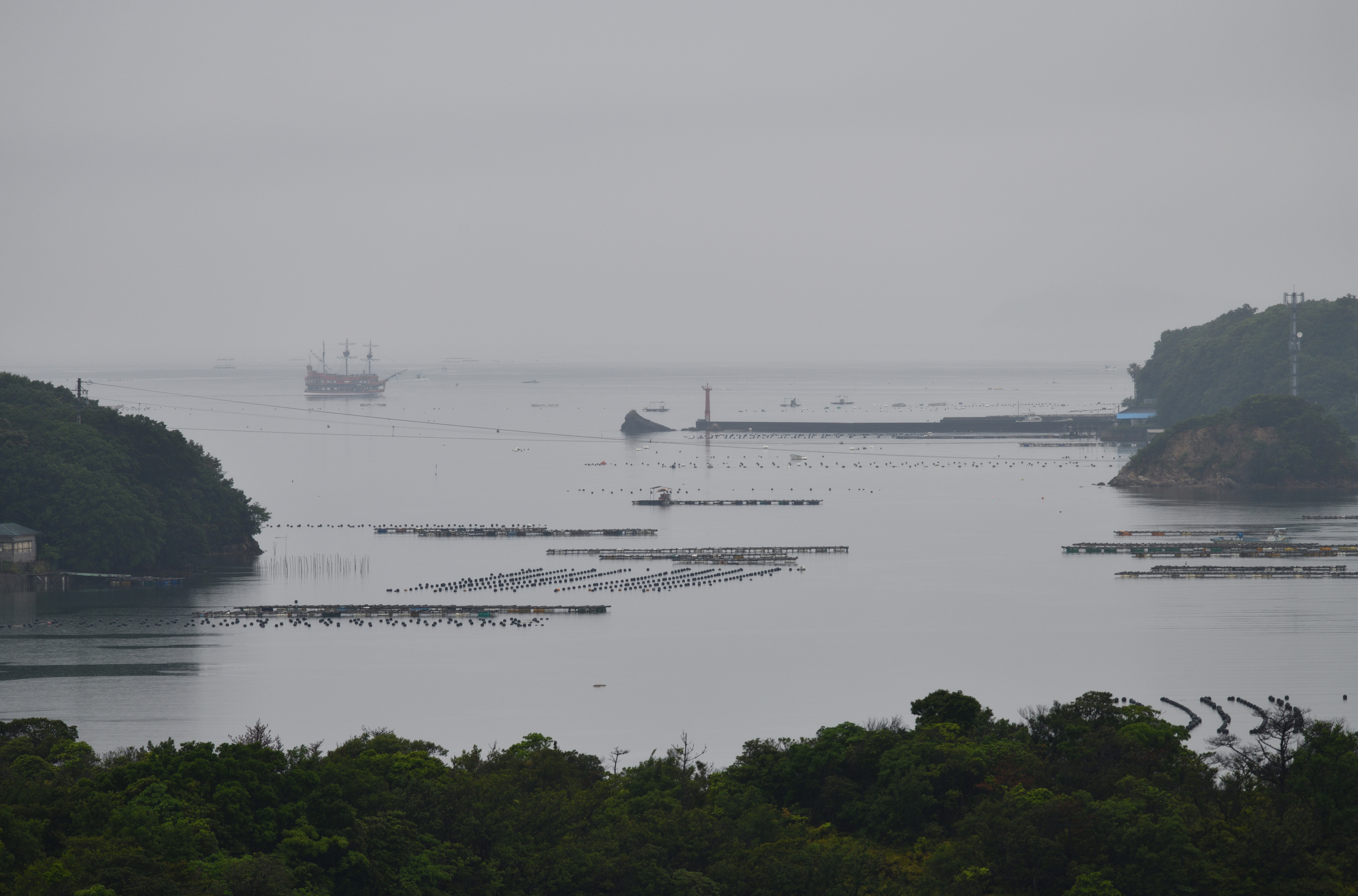 湾口方面を望遠で狙ったら、翌日乗る予定の遊覧船が見えました。