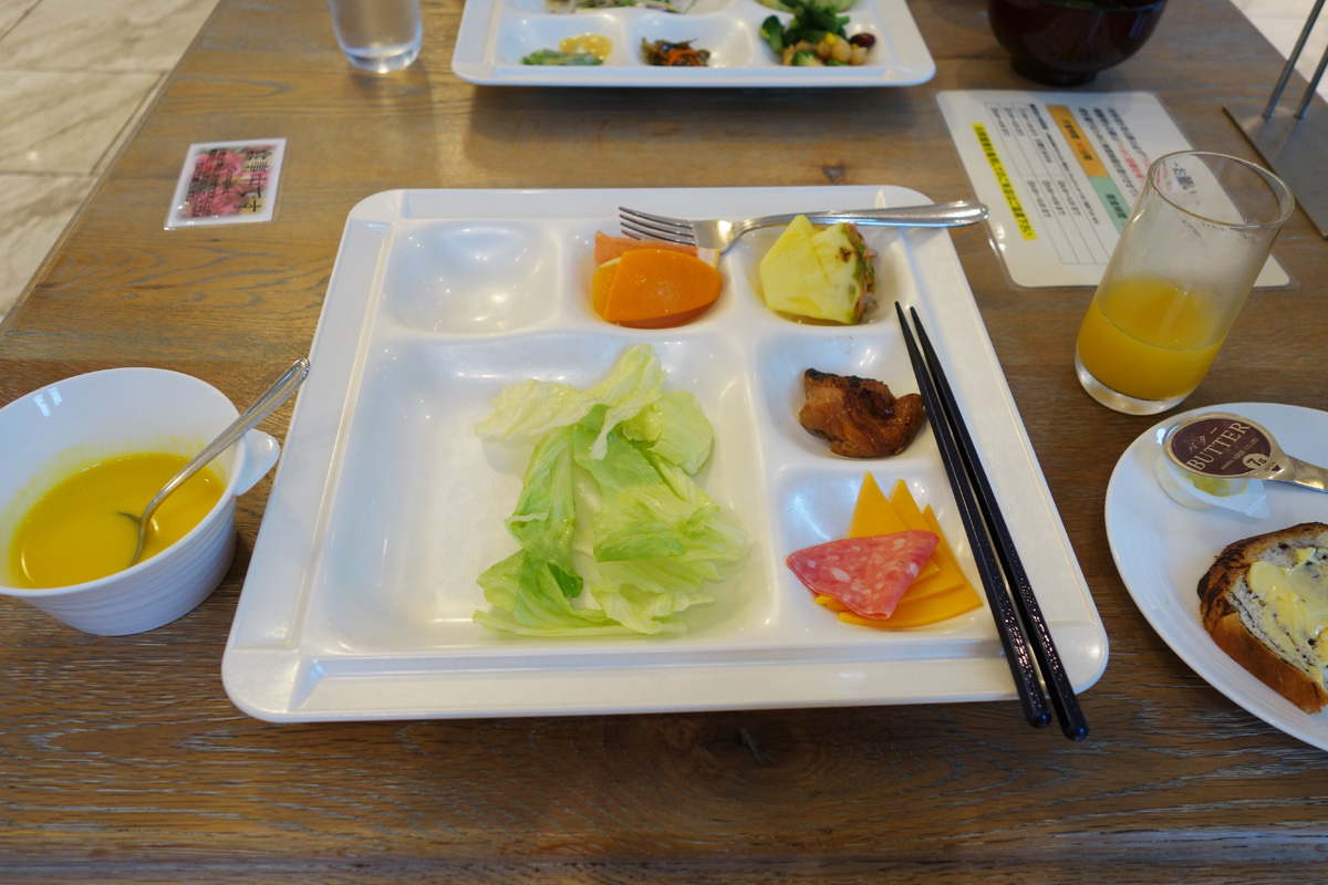 5/19のレストランAZULでの朝食です。ディナー時は丸いお皿でしたが朝食は6分割のプレートもありました。