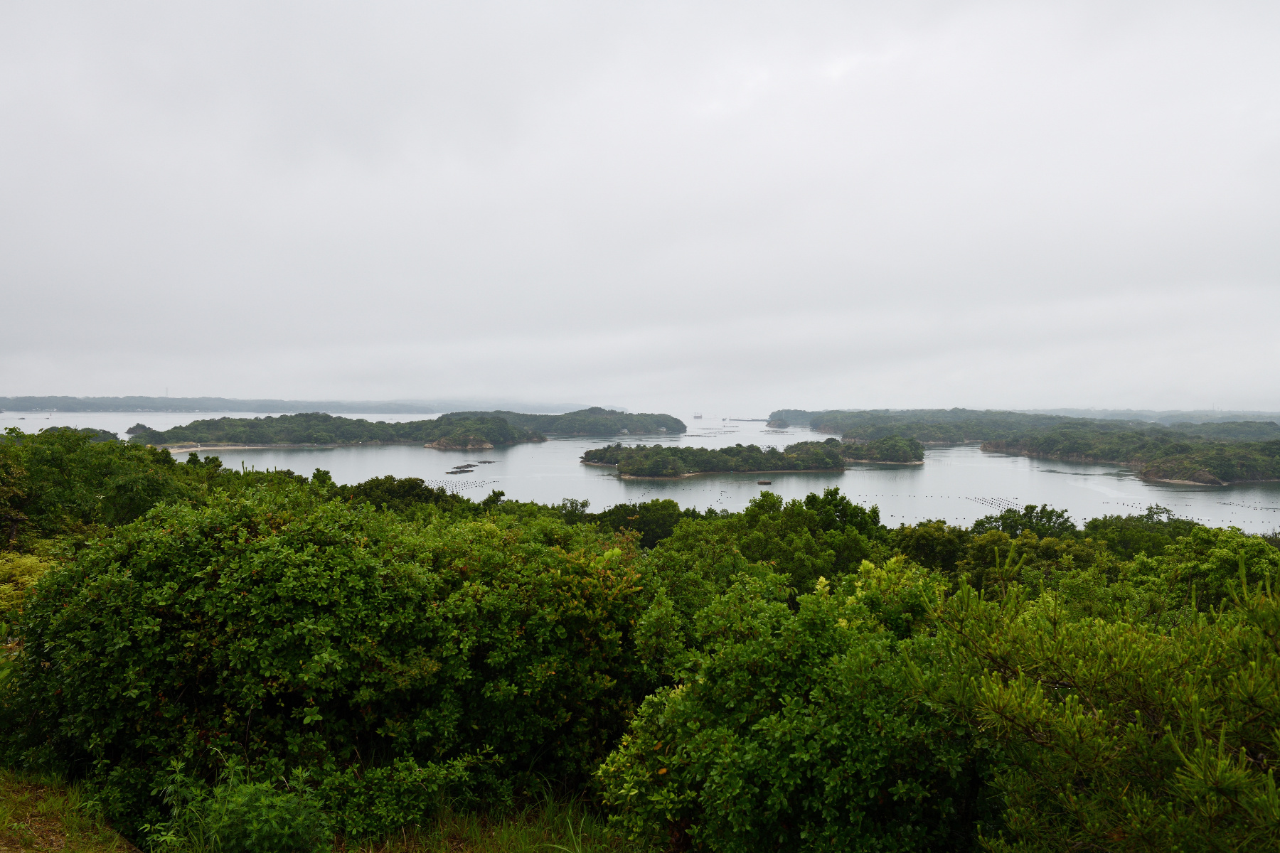 桐垣展望台からの眺めです。これは近くの島々です。右方向遠くにかろうじて賢島も見えていました。
