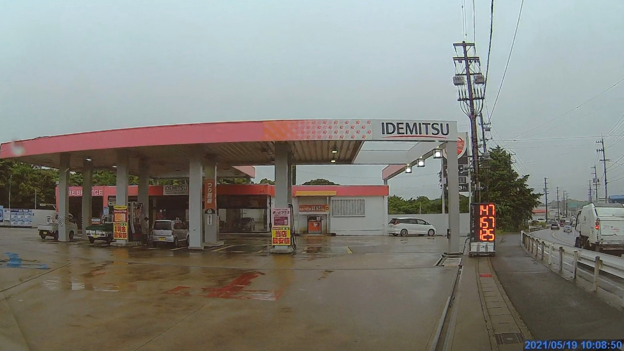事前にIDEMITSUのプリペイドカードが使えるセルフのスタンドを調べてナビに登録してました。