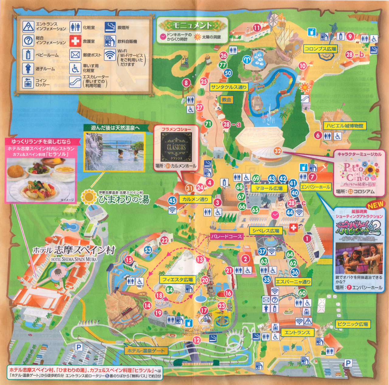 志摩スペイン村のマップです。結構広くてアトラクションも沢山あり一部しか乗れませんでした。一応全てのエリアを一回りすることはできました。