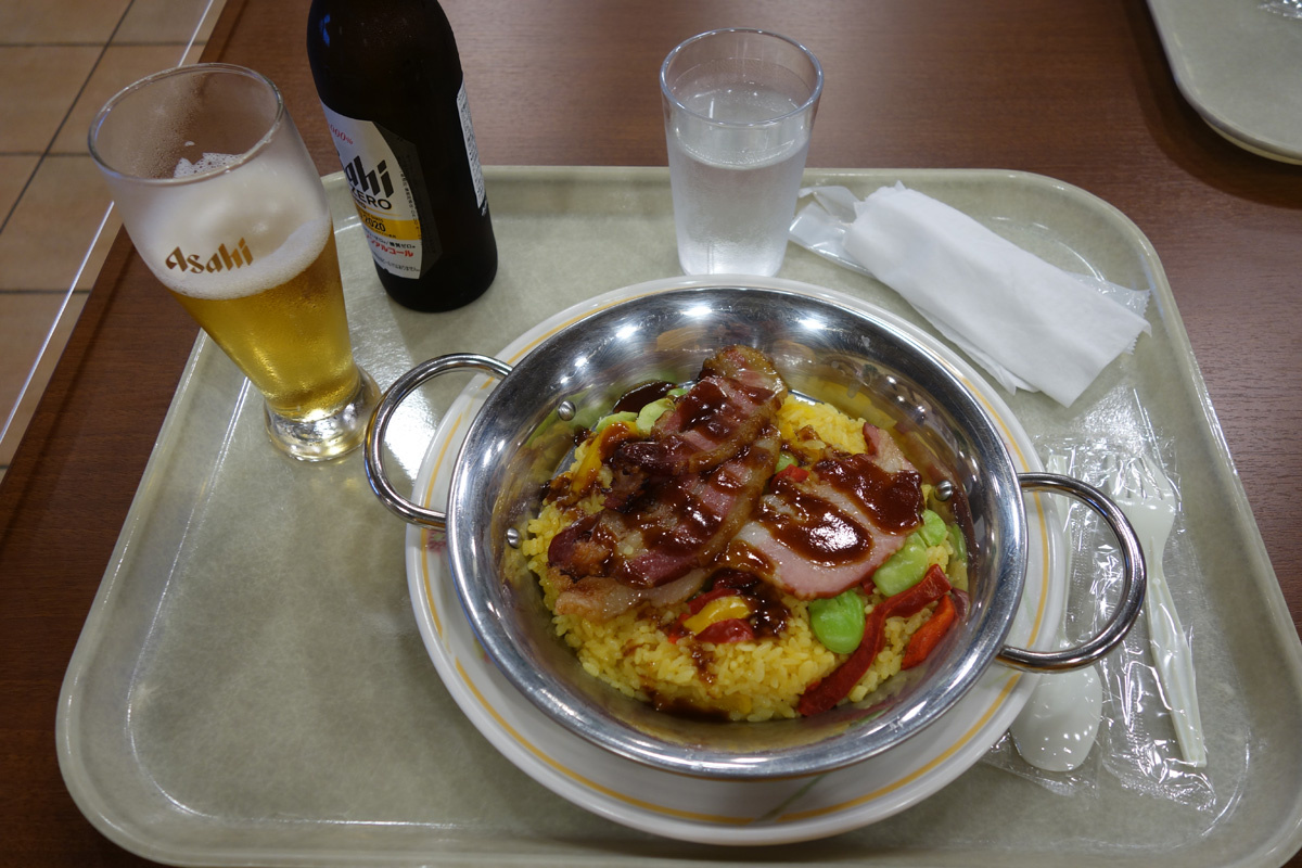 博物館の後はキャラクターミュージカルの時間を確認し、フラメンコショーを予約してからレストラン「エル パティオ」で昼食にしました。イベリコ豚ベーコンのパエリャです。