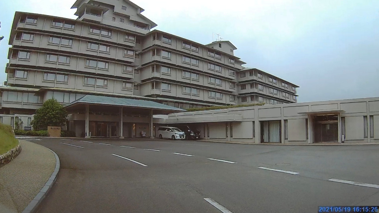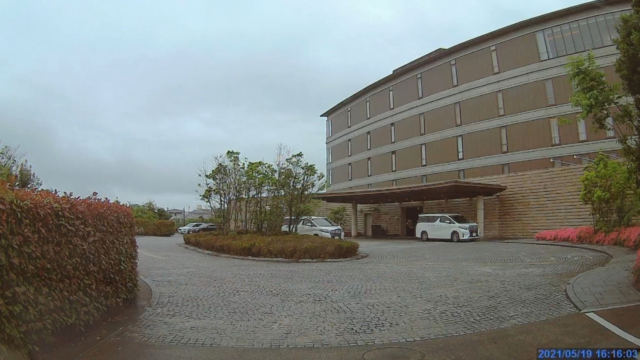 駐車場は左奥に見える入口隣接のエリアが1台だけ空いてました。ホテルの送迎車両はトヨタアルファードでした。