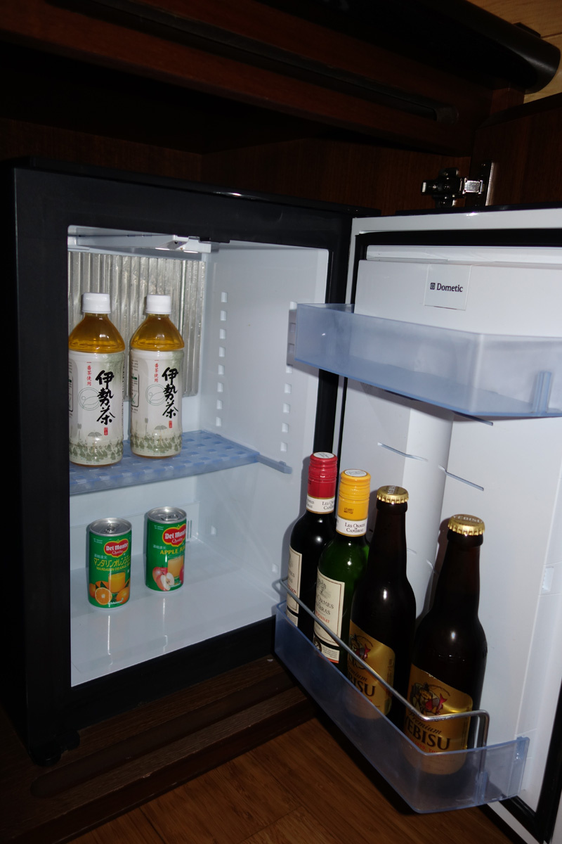 このホテルは冷蔵庫内のワイン、ビールも自由に飲めます。