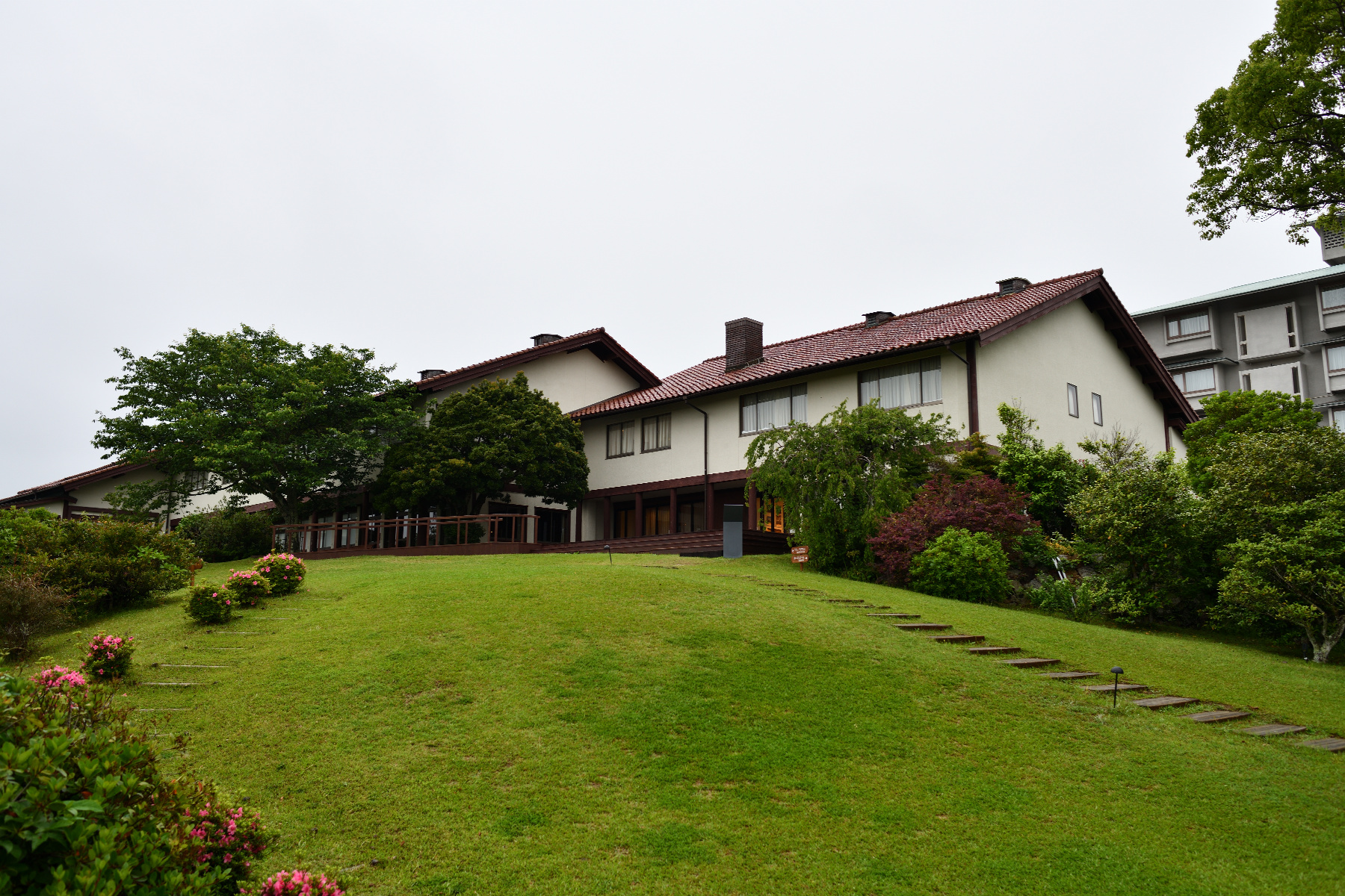一番古い建物であるザ クラブの前に出てきました。ここは今は客室としては使ってなくて展示スペースや倉庫になっているそうです。