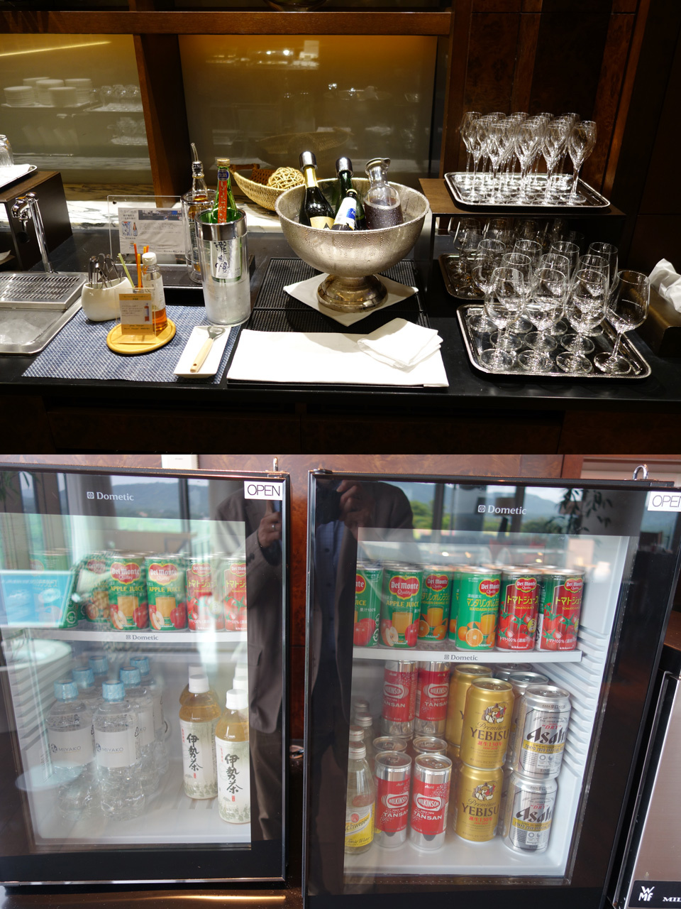 ラウンジではワインもビールも飲み放題。でも腹が一杯なので見るだけにして部屋に戻ってからビールとワインを飲みました。