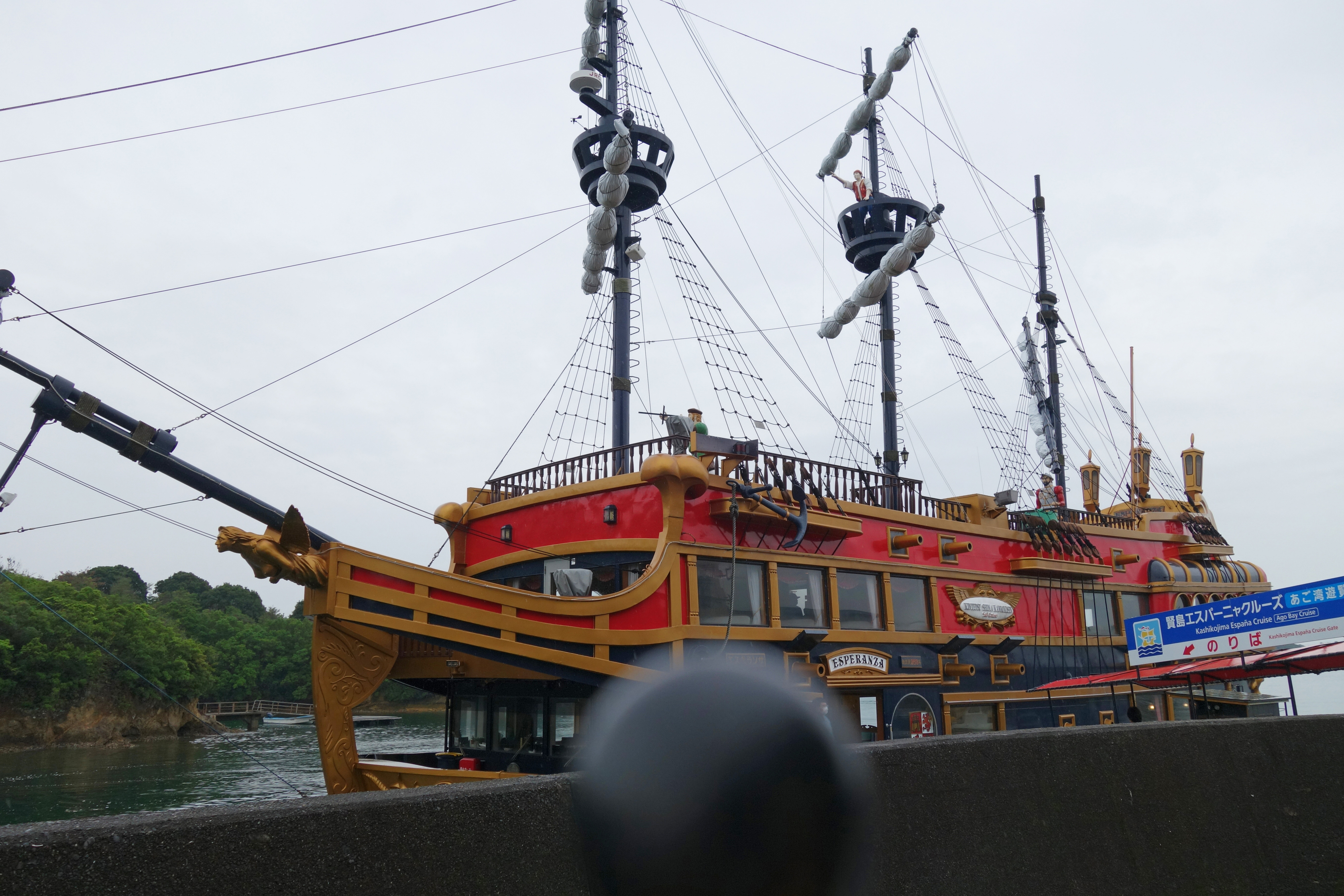 このエスペランサと言う船に乗ります。甲板に人形が設置されているのは演出し過ぎ?。