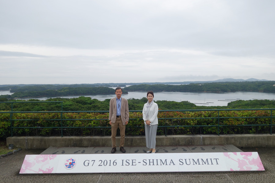 朝食後に5階の屋上庭園に行ったら伊勢志摩サミットで集合写真を撮った場所があったので記念写真を撮っておきました。カメラを置くのにちょうど良い台が設置されてました。