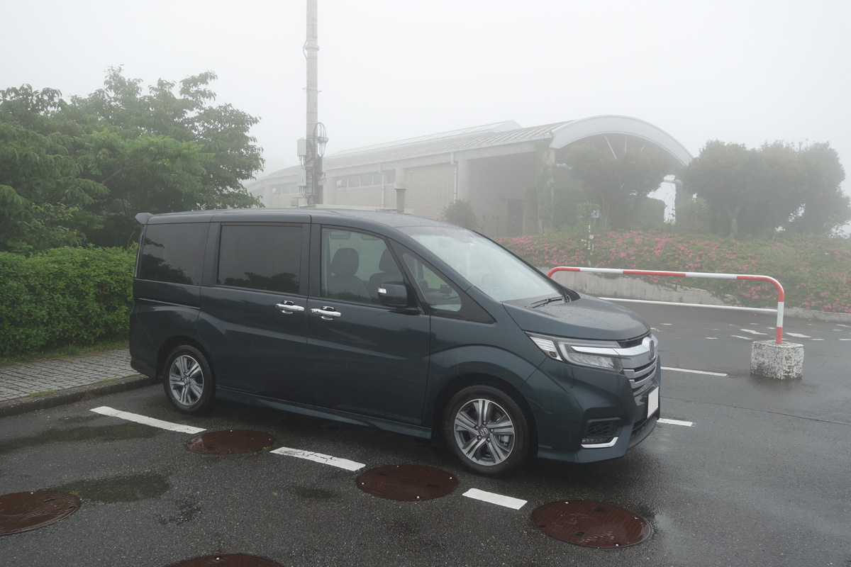 静岡SAに入りましたが、豪雨なのでクルマを降りずに運転を交代して先に進みました。ステップワゴンは車内で移動できるので便利です。