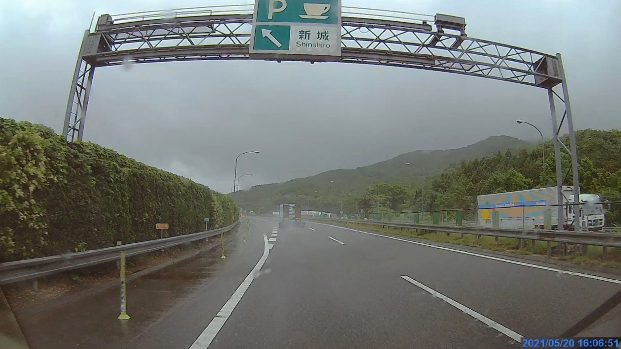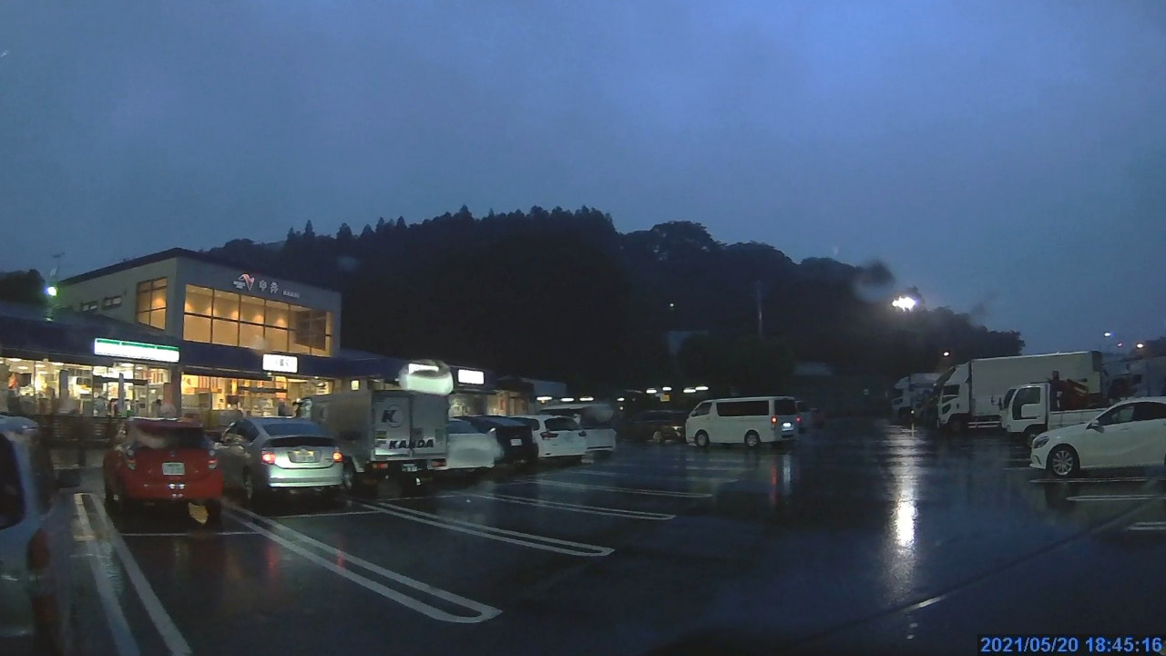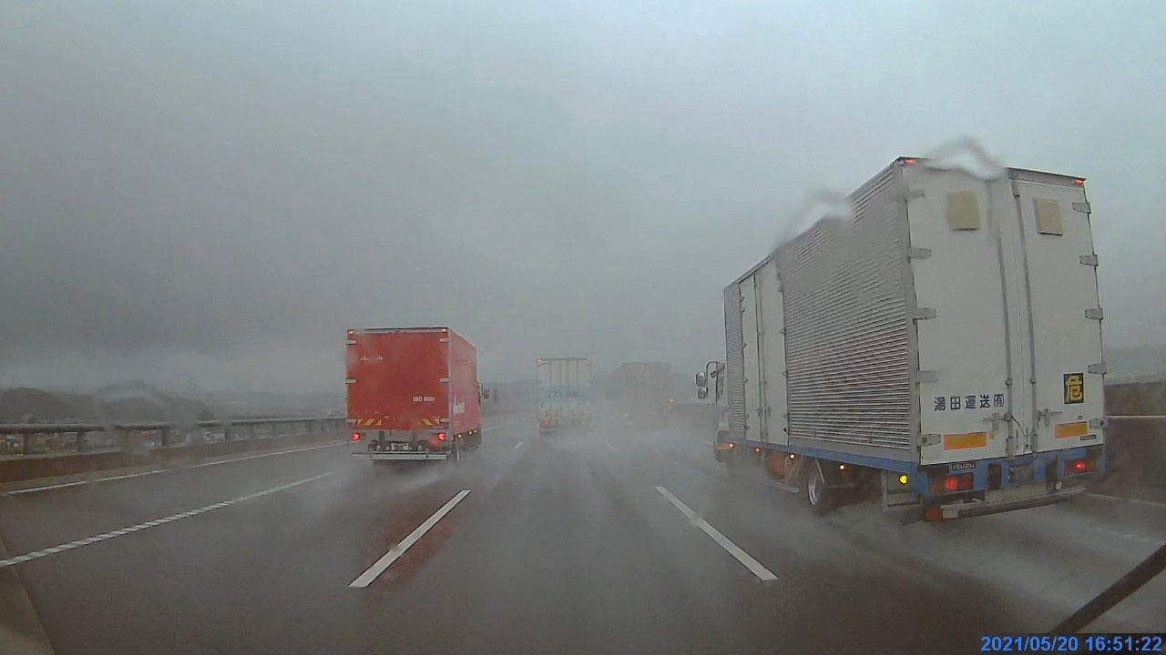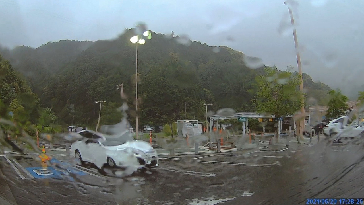 途中は激しい雨。豪雨でワイパーを高速にするとLKASが必ず解除されるようでした。ワイパーが邪魔してフロントセンサーカメラが正常に機能しなくなるのか、そもそも高速ワイパーが必要なほどの豪雨時にはLKASを使うなと言うことなのかは不明です。
