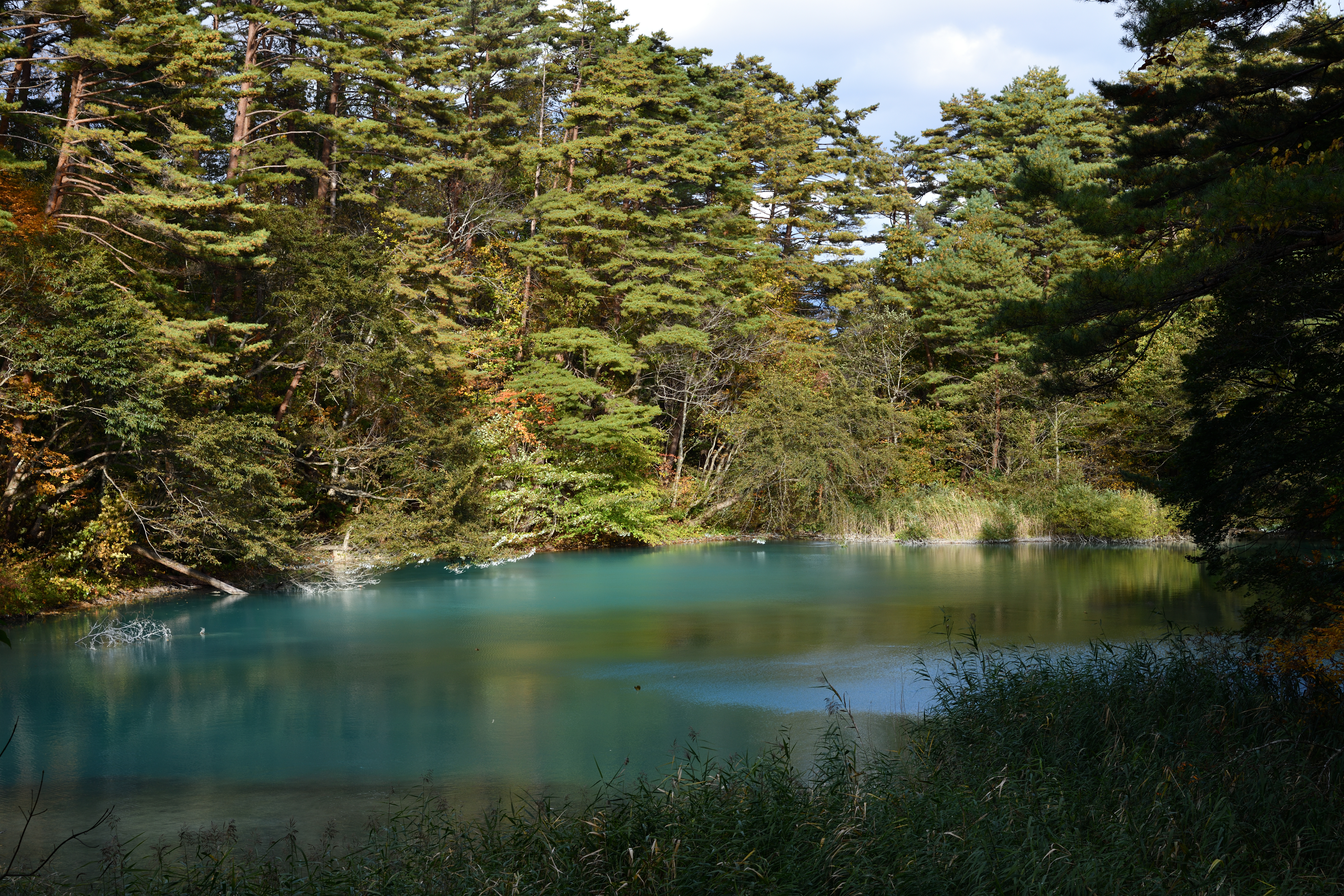 青沼です。五色沼には4つの水系(水の流れ)があり、沼により成分が異なるので色も変化しているそうです。