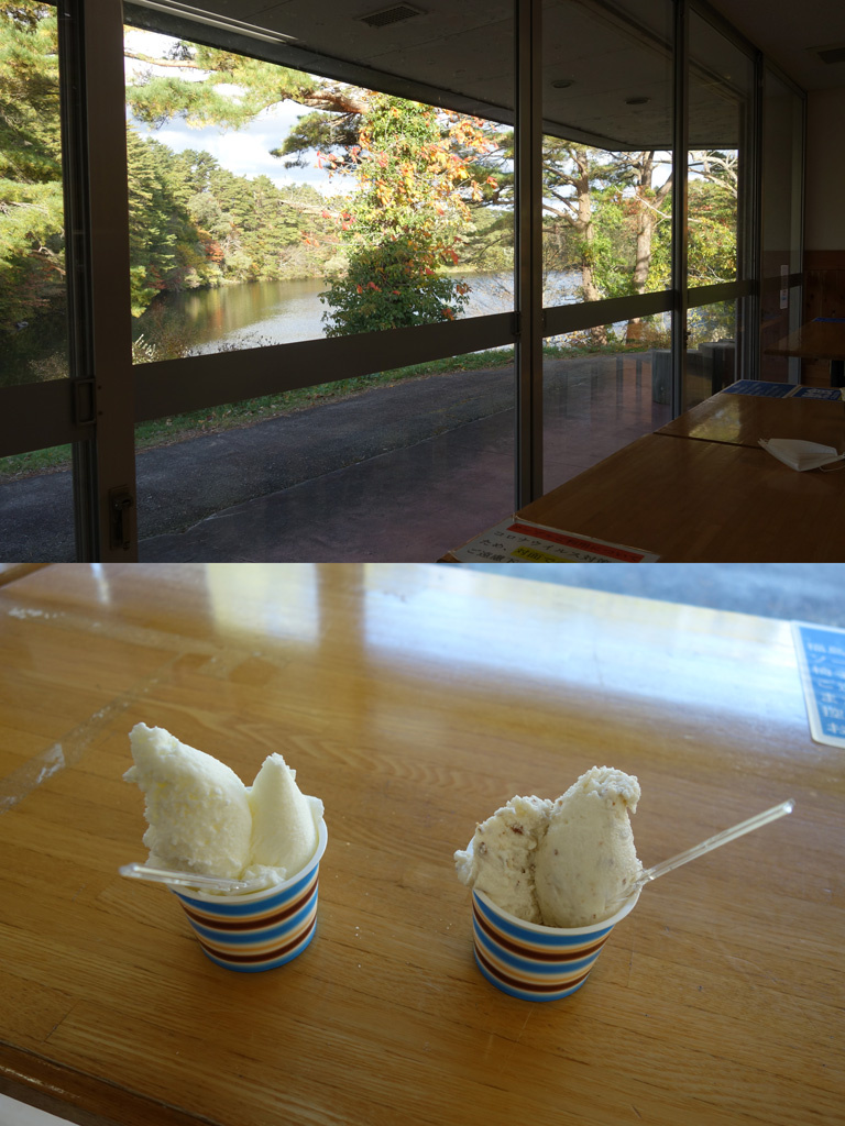 裏磐梯物産館で柳沼を眺めながらソフトクリームを食べました。