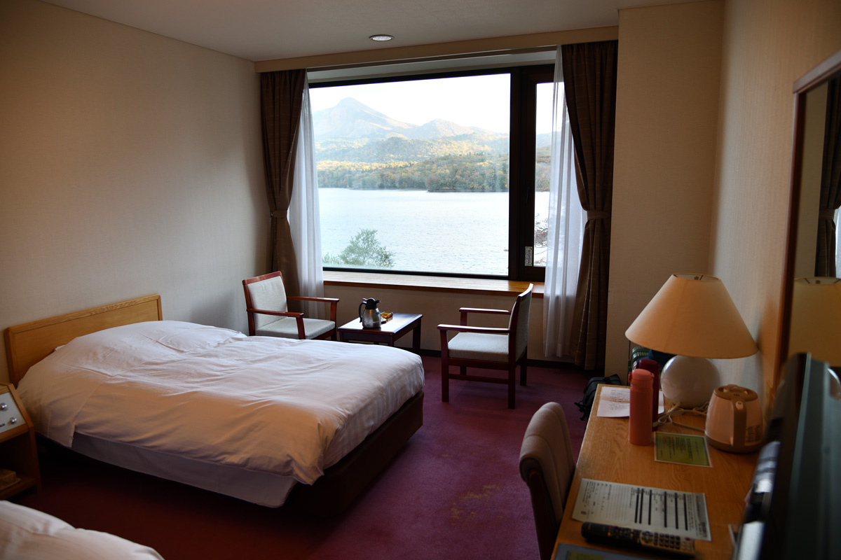 磐梯檜原湖畔ホテルの部屋です。ここは檜原湖や磐梯山の眺めが良いです。