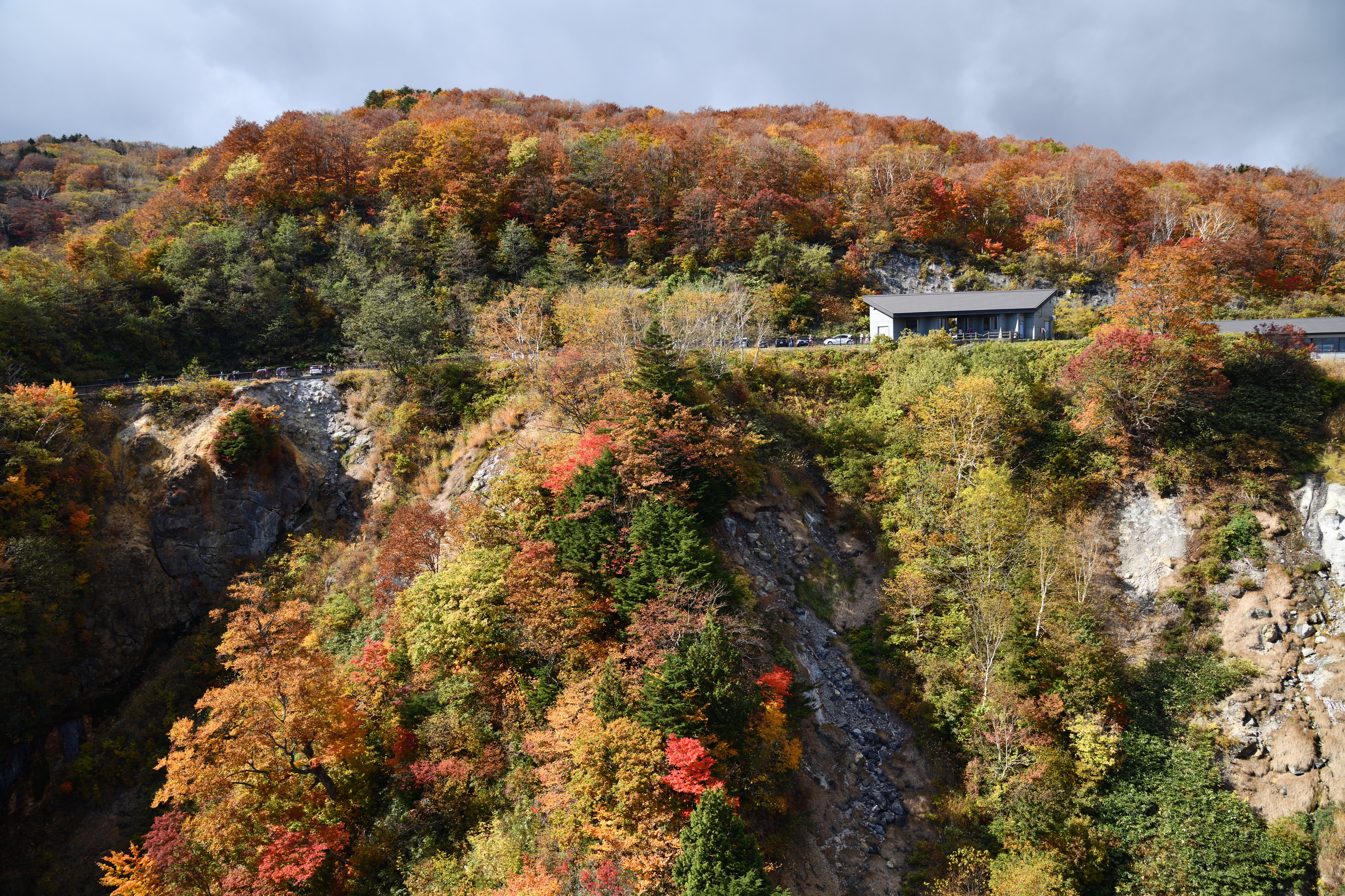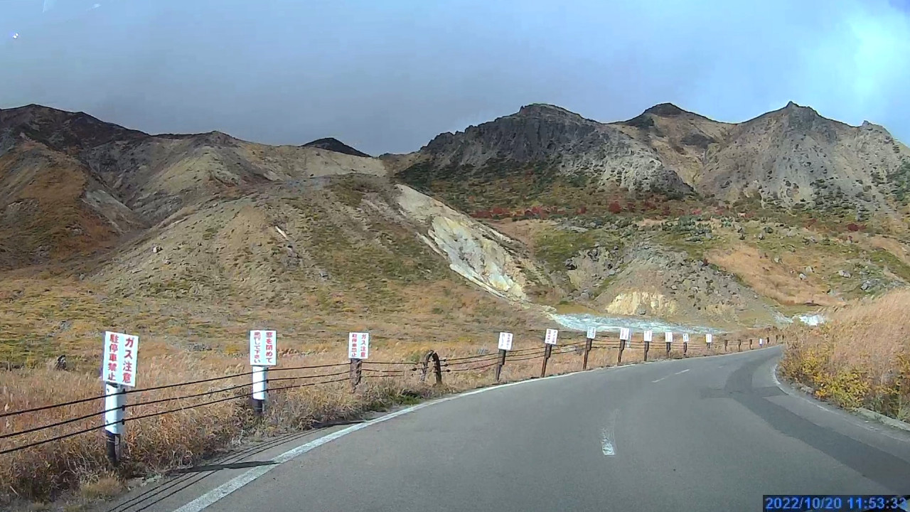 クルマに戻って走り始めると「ガス注意」とか「窓を閉めて走行して下さい」とかの看板が並んでいます。既に硫黄臭がプンプン^^。早々に走り抜けるに限ります。渋滞していなくて良かった。