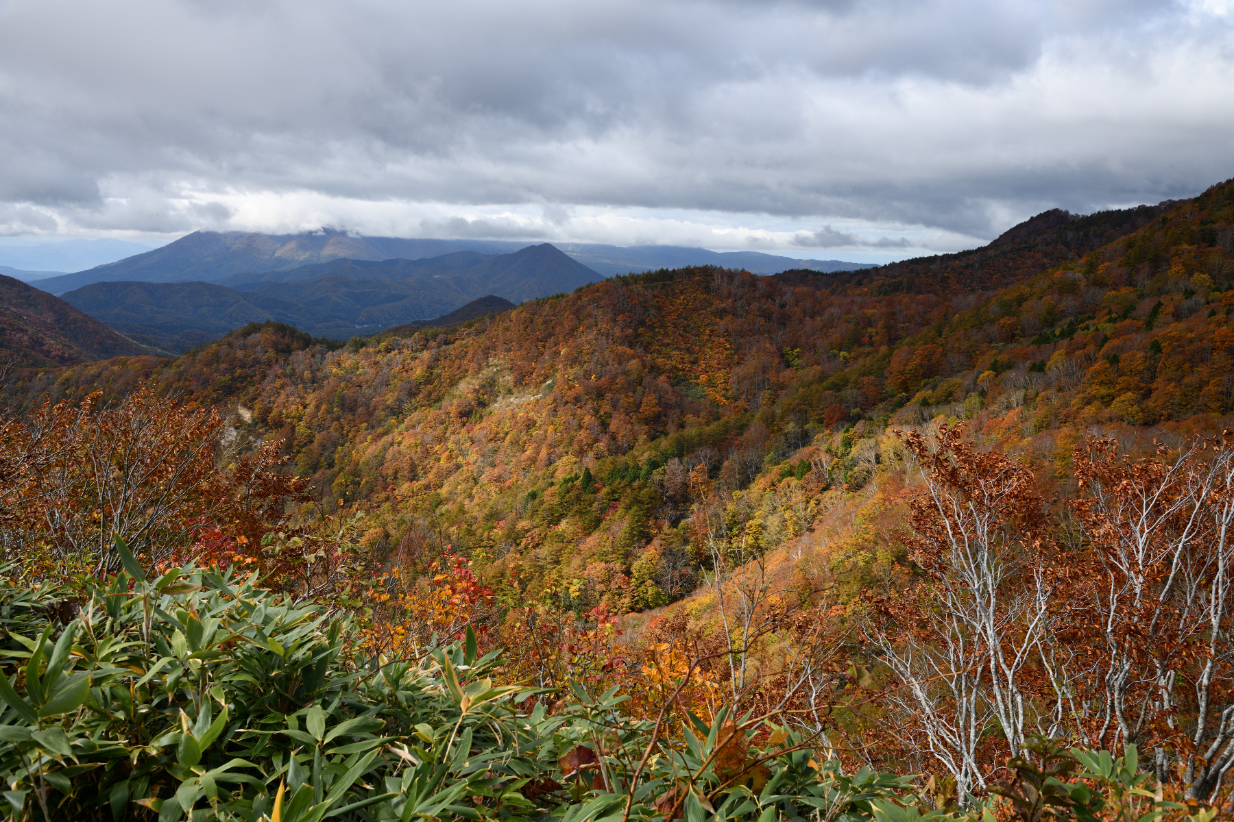 磐梯吾妻スカイライン中腹の紅葉です。一部日が陰って暗くなってますが山一面見事に紅葉してます。