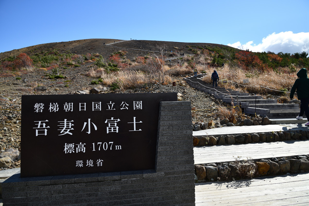 この吾妻小富士に登ります。何となくメキシコテオティワカンの太陽のピラミッドに登った時の事を思い出しました。