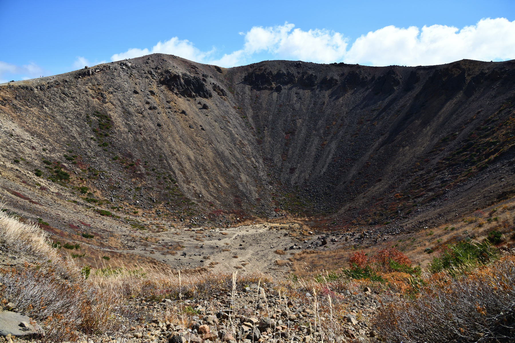 頂上では雄大な噴火口を見ることができます。富士山の噴火口よりは一回り小さいようです。