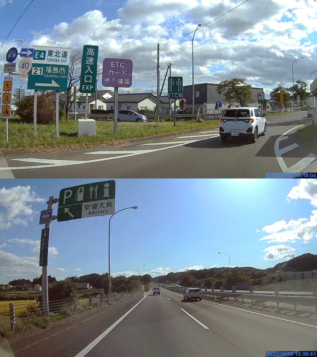 途中にはスキー場が沢山あるようでした(写真上)。途中で磐梯吾妻レークラインと磐梯吾妻スカイラインへの分かれ道があります(写真下)。