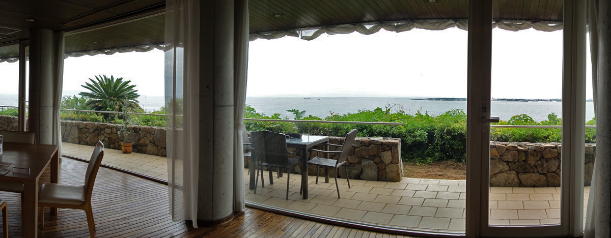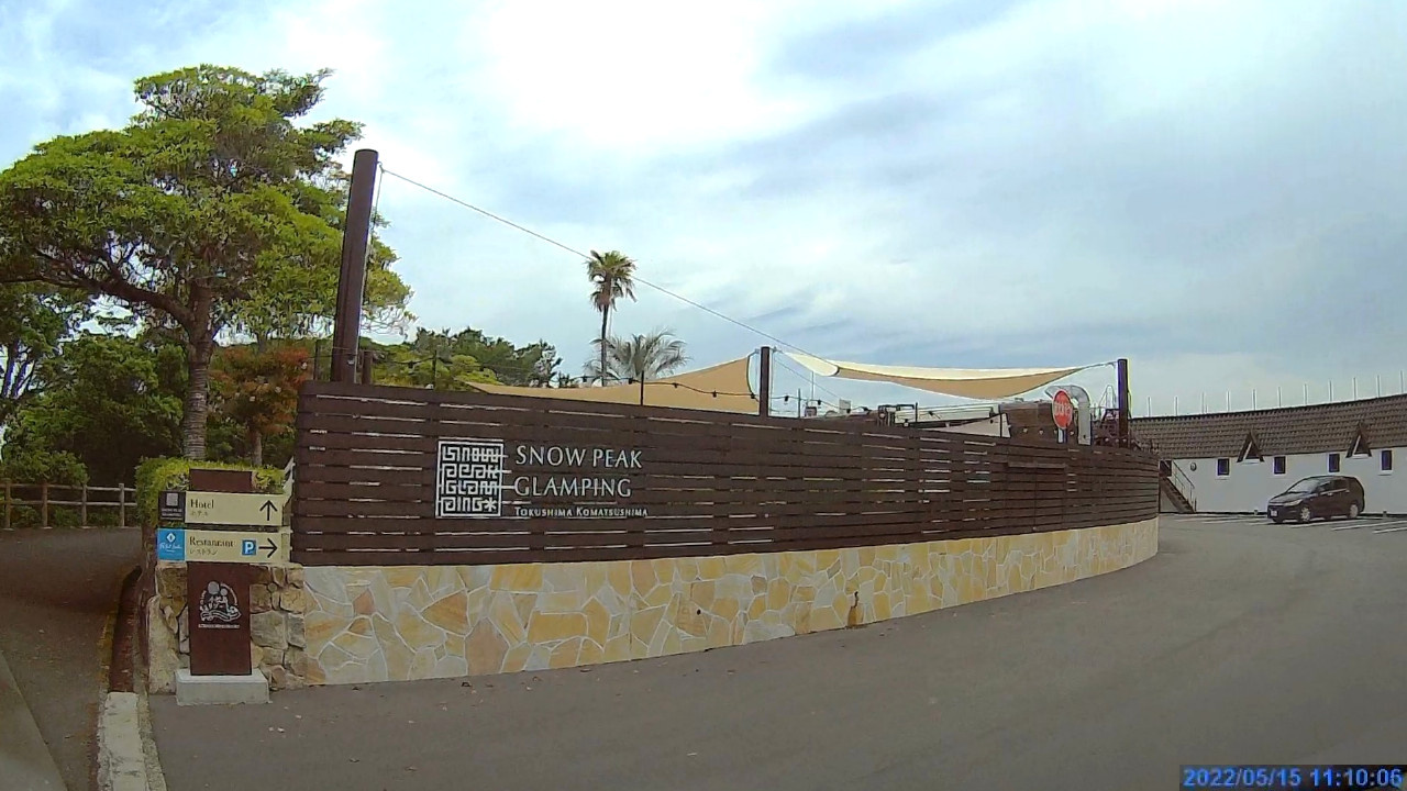 小松島リゾートに到着しました。小松島リゾートは昨年4/16にオープンしたホテル宿泊スタイルのグランピングリゾートだそうで、客室に海に面した大きなデッキがありテントを張ったりバーベキューをしたりもできるようです。しかし宿泊料金が高い!(1人1泊55,000円から)。ちょっと泊まれませんね。