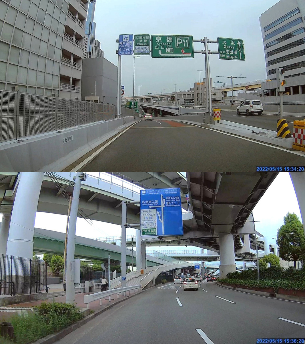 神戸市内に入りナビの指示に従いどこだか分からないところを走って行きます。京橋と言うところで一度出て今度はハーバーハイウェイに入りました。
