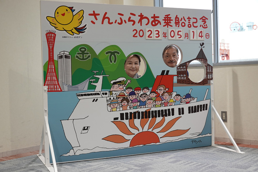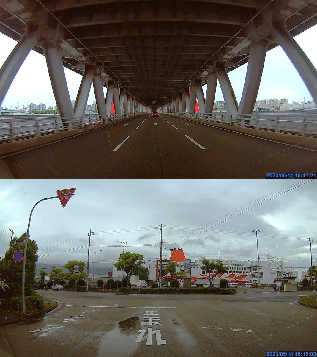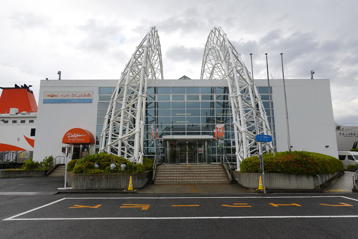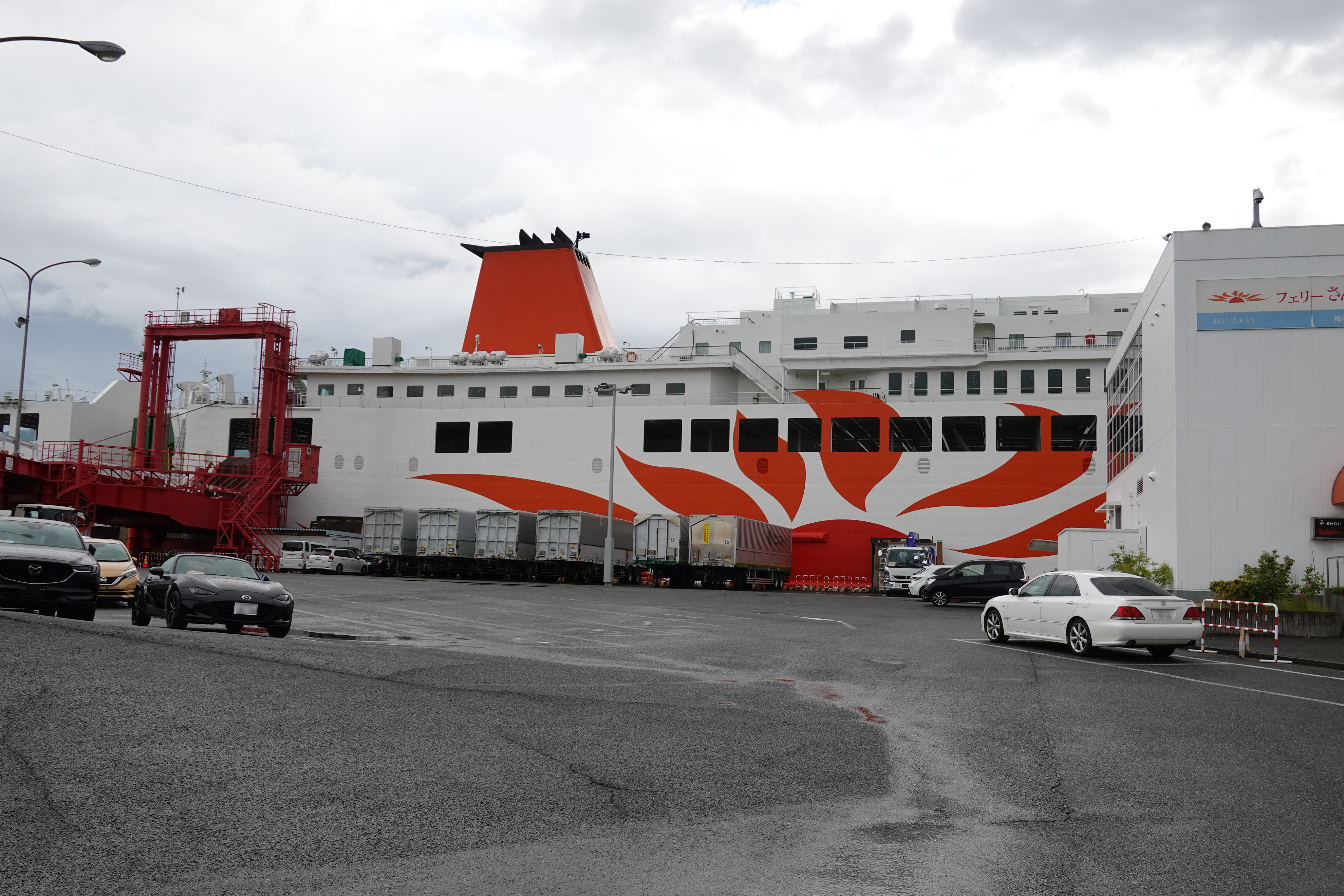 ![]() 橋を渡って六甲アイランドへ。すぐにフェリーさんふらわあの船が見えてきました。太陽マークが目立つのでわかりやすいです。 |