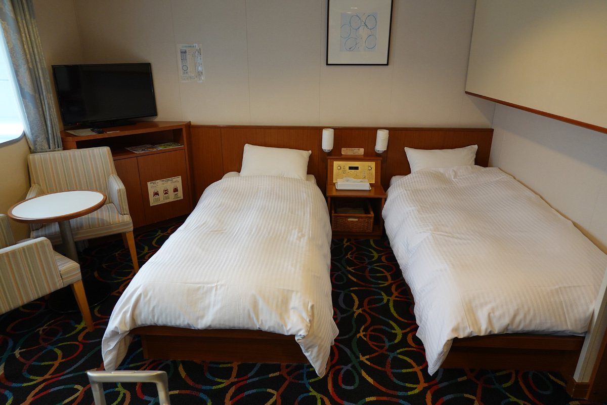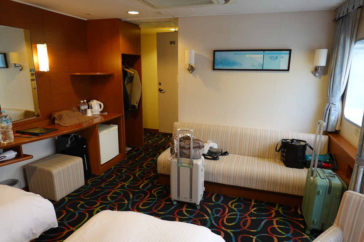 さんふらわあは昨年の阪九フェリーや名門大洋フェリーと比べると割高でした(1年で燃料費が上がったせいもあるかも知れませんが)。 ネットで2割引きとかはなく(1割引はあるらしい)代わりに舟遊割引がありました。行きと帰りで別航路を使った場合の割引です。行きに正規料金を払うと、帰りの一部が半額になるようですが割引の詳細がわかりにくいです。結果、行きがデラックスルーム(最上級)で70,480円、帰りがスイートルーム(最上級)で55,940円でした。単独予約の価格と比べると25,000円程度の割引になっているようでした。 |