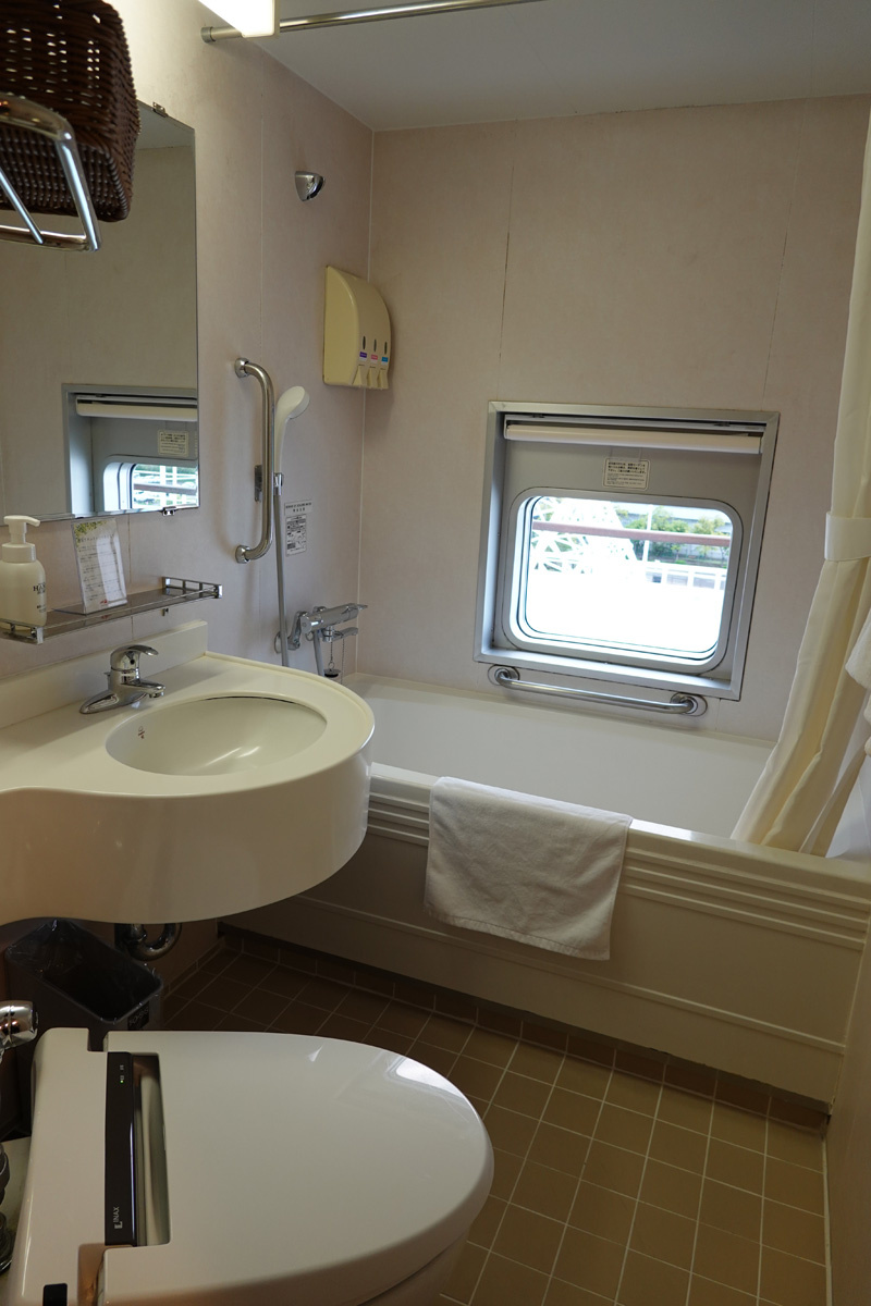 ![]() トイレ、洗面、浴室が3点セットですが、浴室には窓があり海を眺めることができます。 |