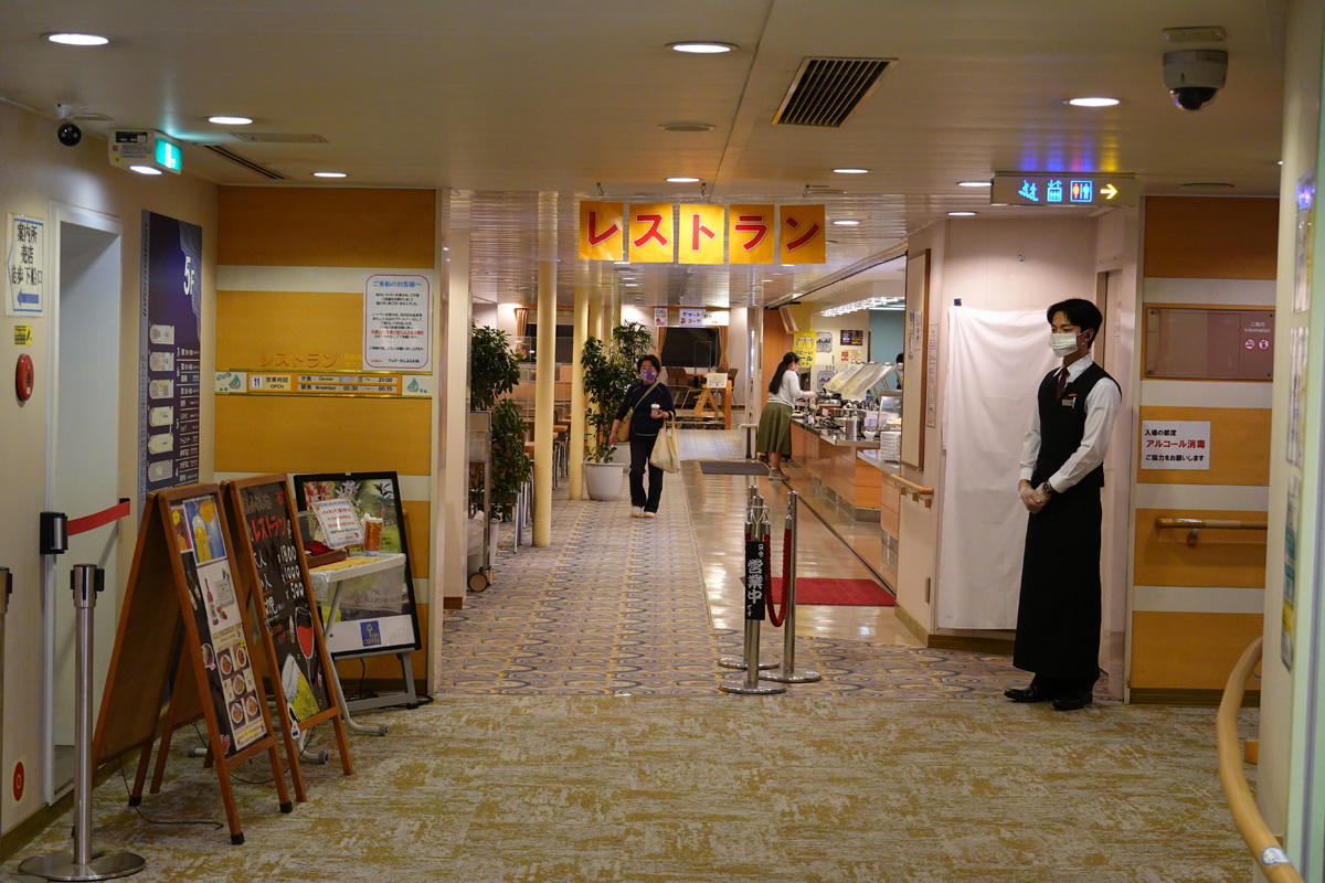 ![]() レストラン入口です。夕食はバイキング・ビュッフェで1人1,800円でした(5/7まで1,500円だったらしい^^;)。 |