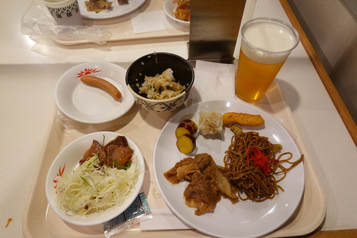 ![]() 最初の一皿。生ビールは自販機で1杯500円です。 |