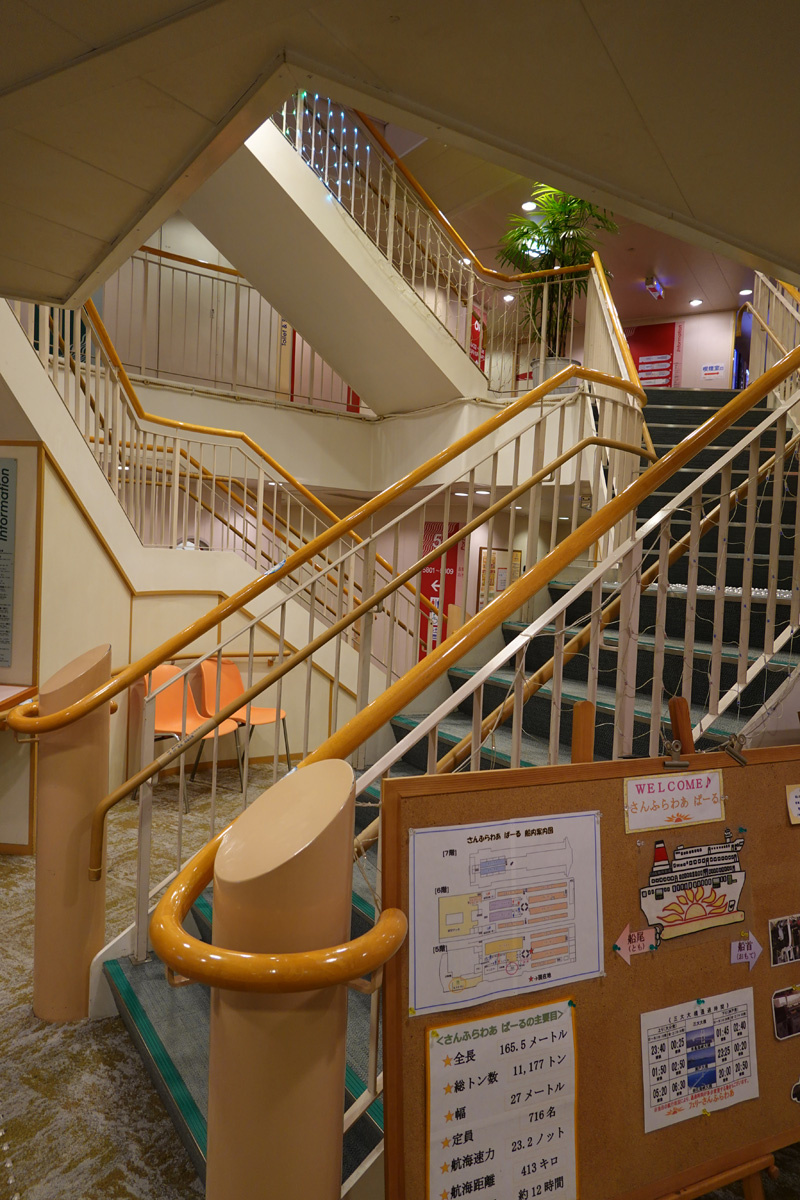 【全天球写真】さんふらわあ神戸大分航路「ぱーる」のエントランスホール階段下。 |